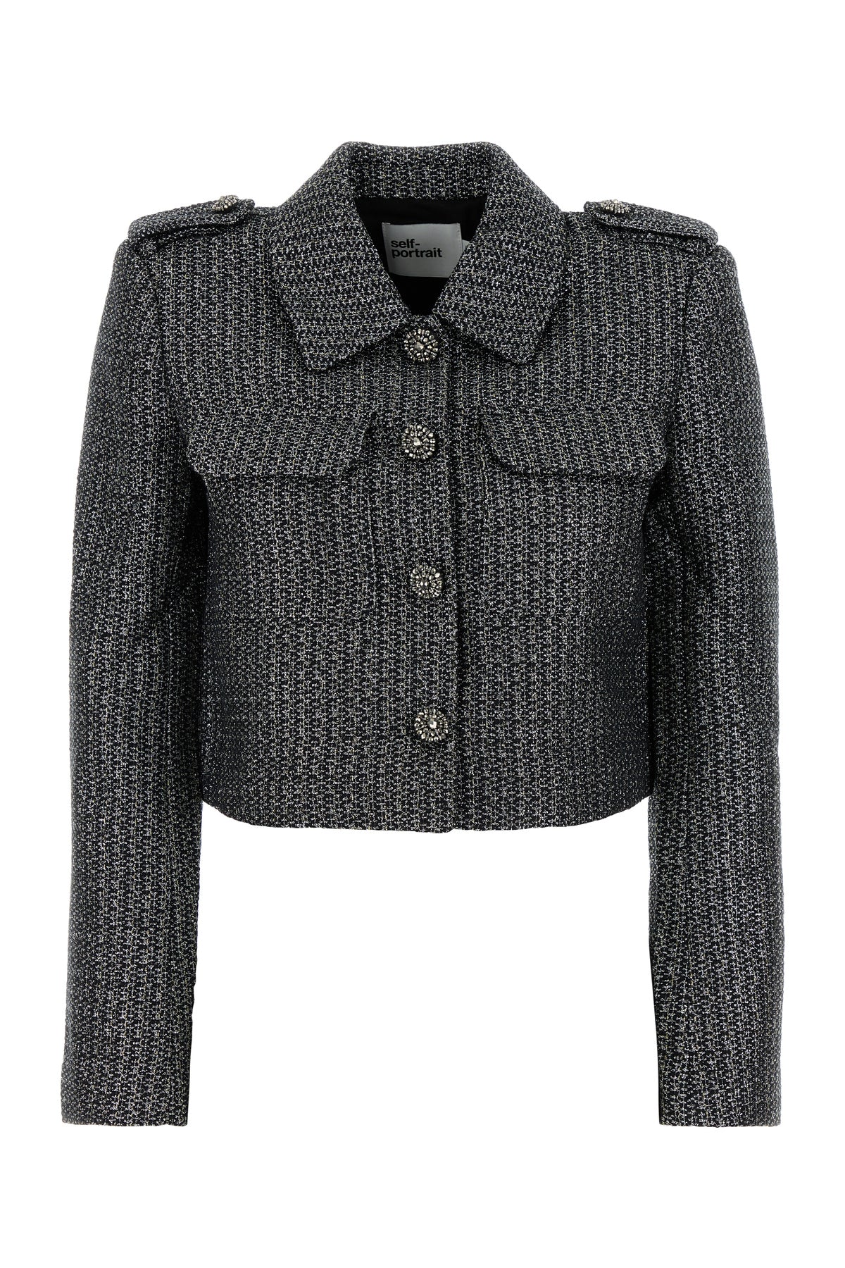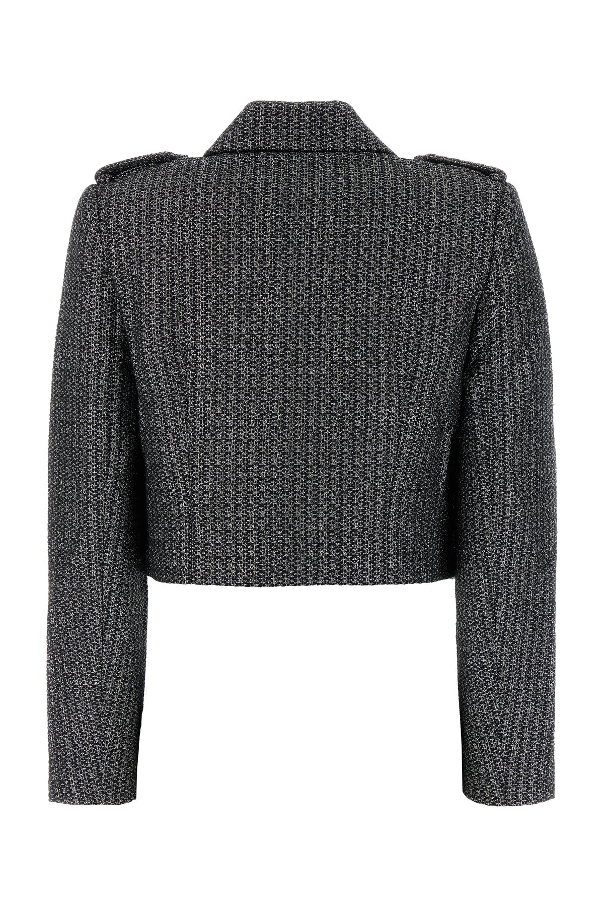 Blazer realized in boucle with lurex threads characterized by epaulettes.