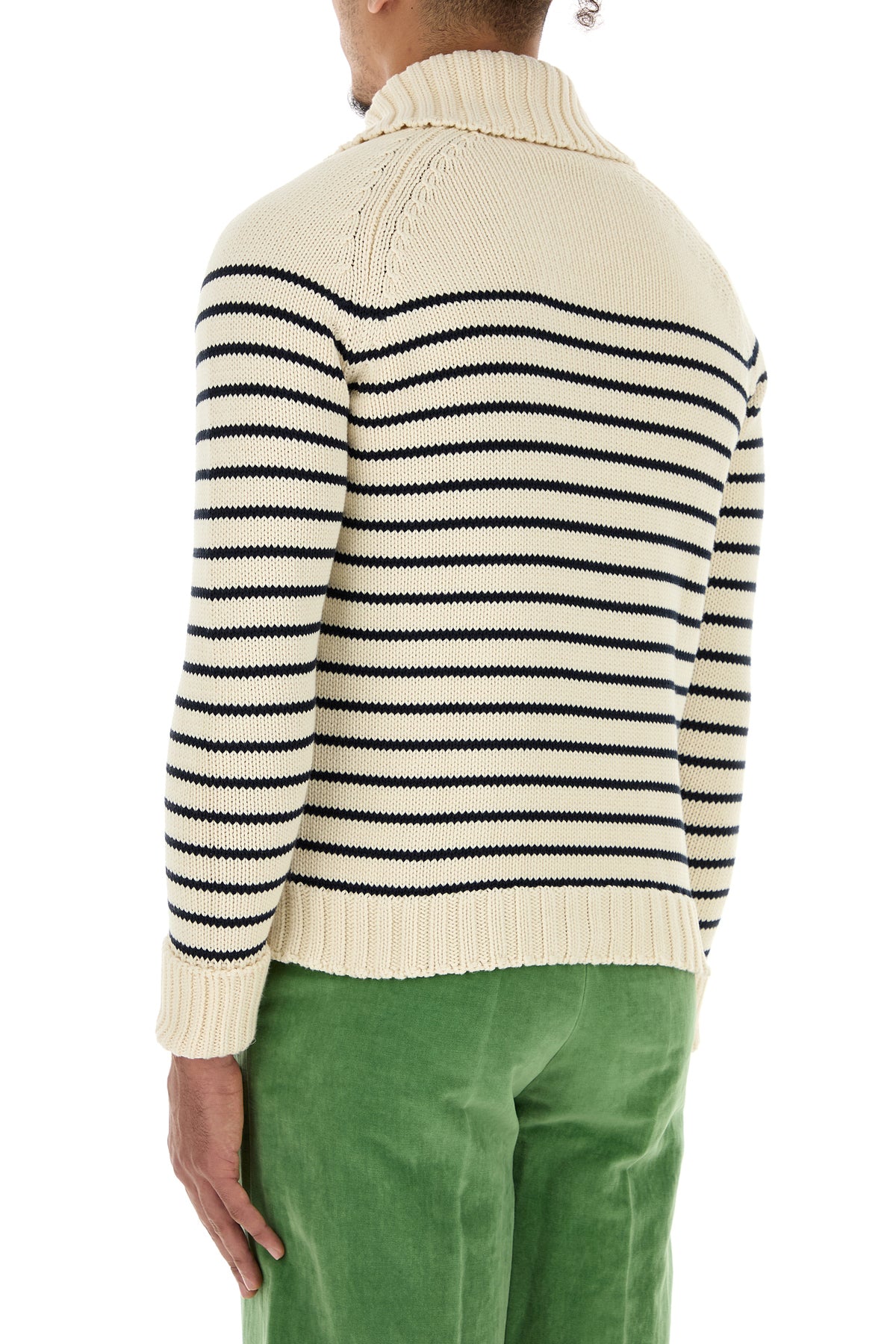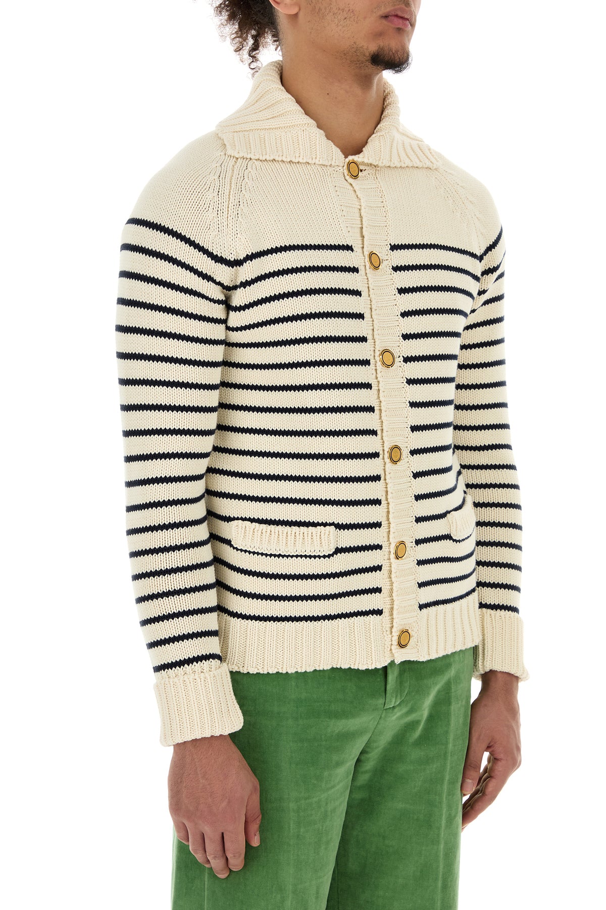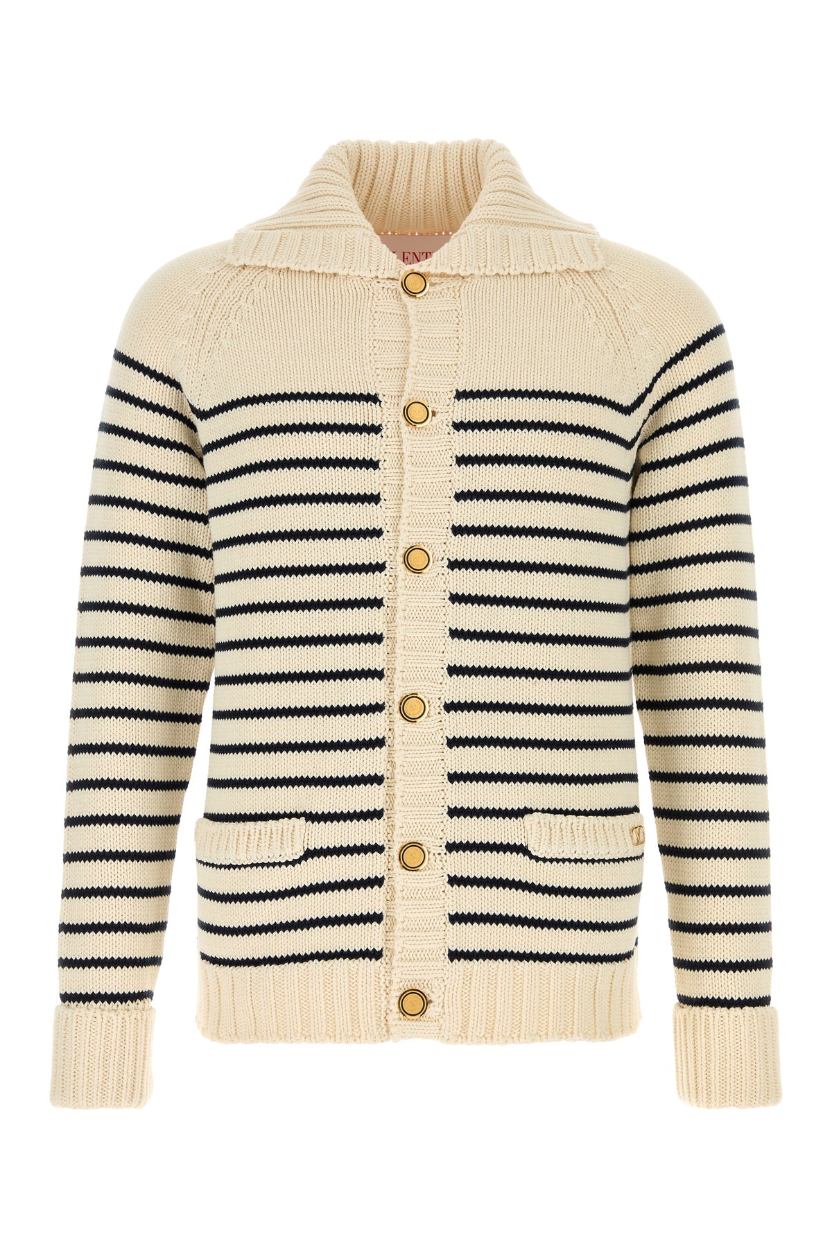 Cardigan realized in pure cotton characterized by striped embroidery on the entire surface enriched by VLogo Signature metal detail at the front.