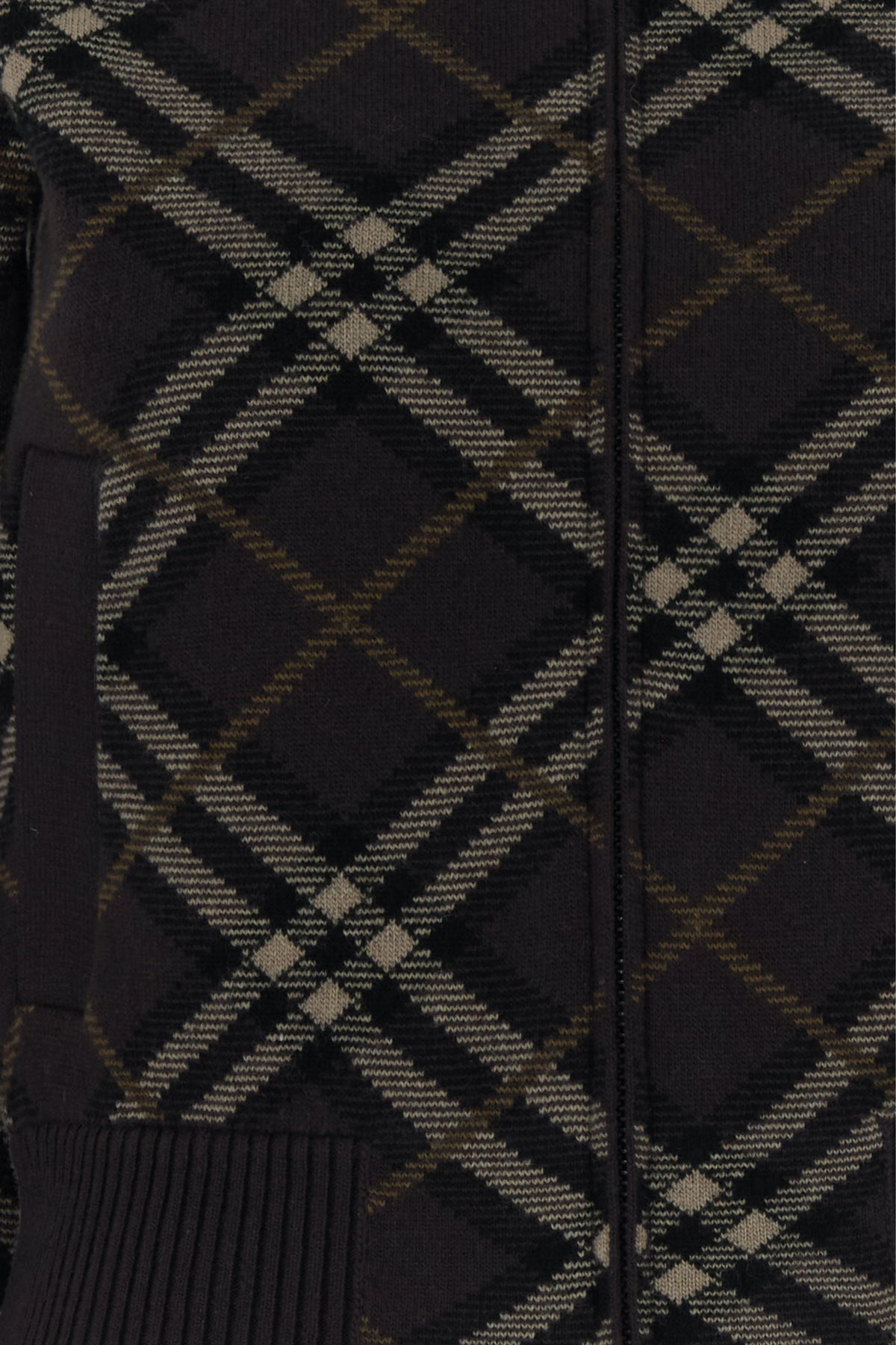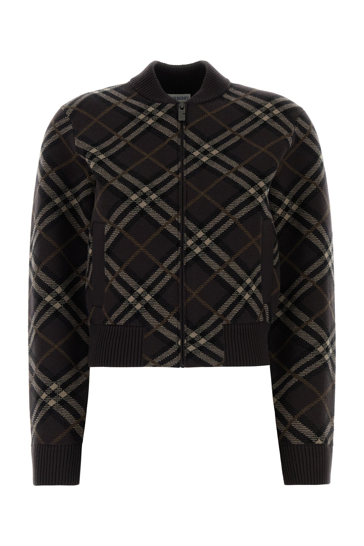 Cardigan realized in stretch wool blend characterized by Burberry Check embroidery on the entire surface.