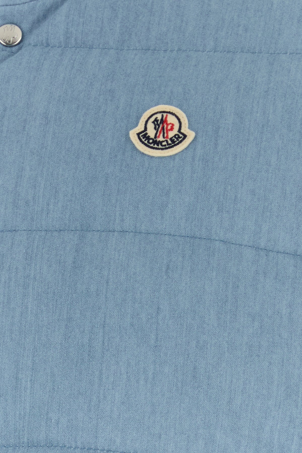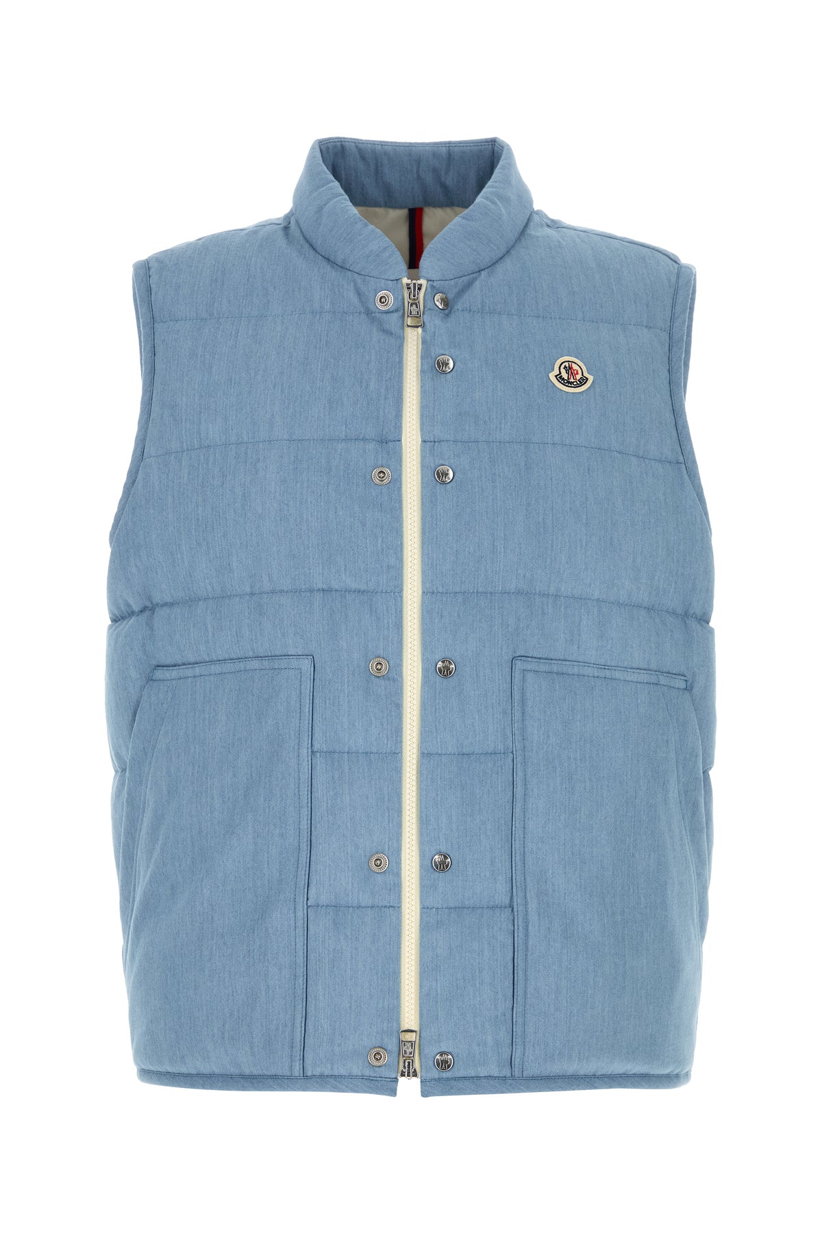 Sleeveless down jacket realized in pure cotton enriched by logoed patch on the chest.