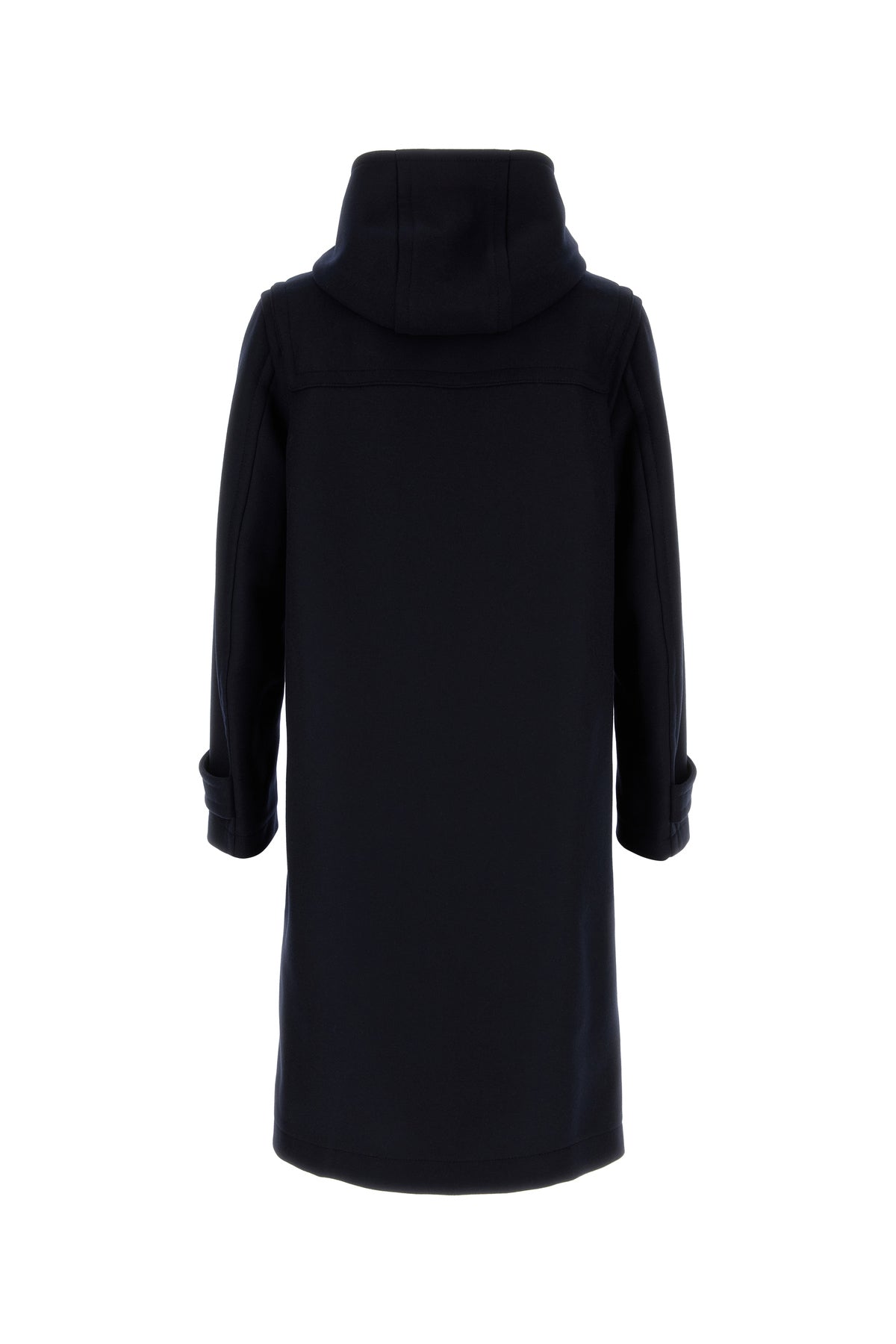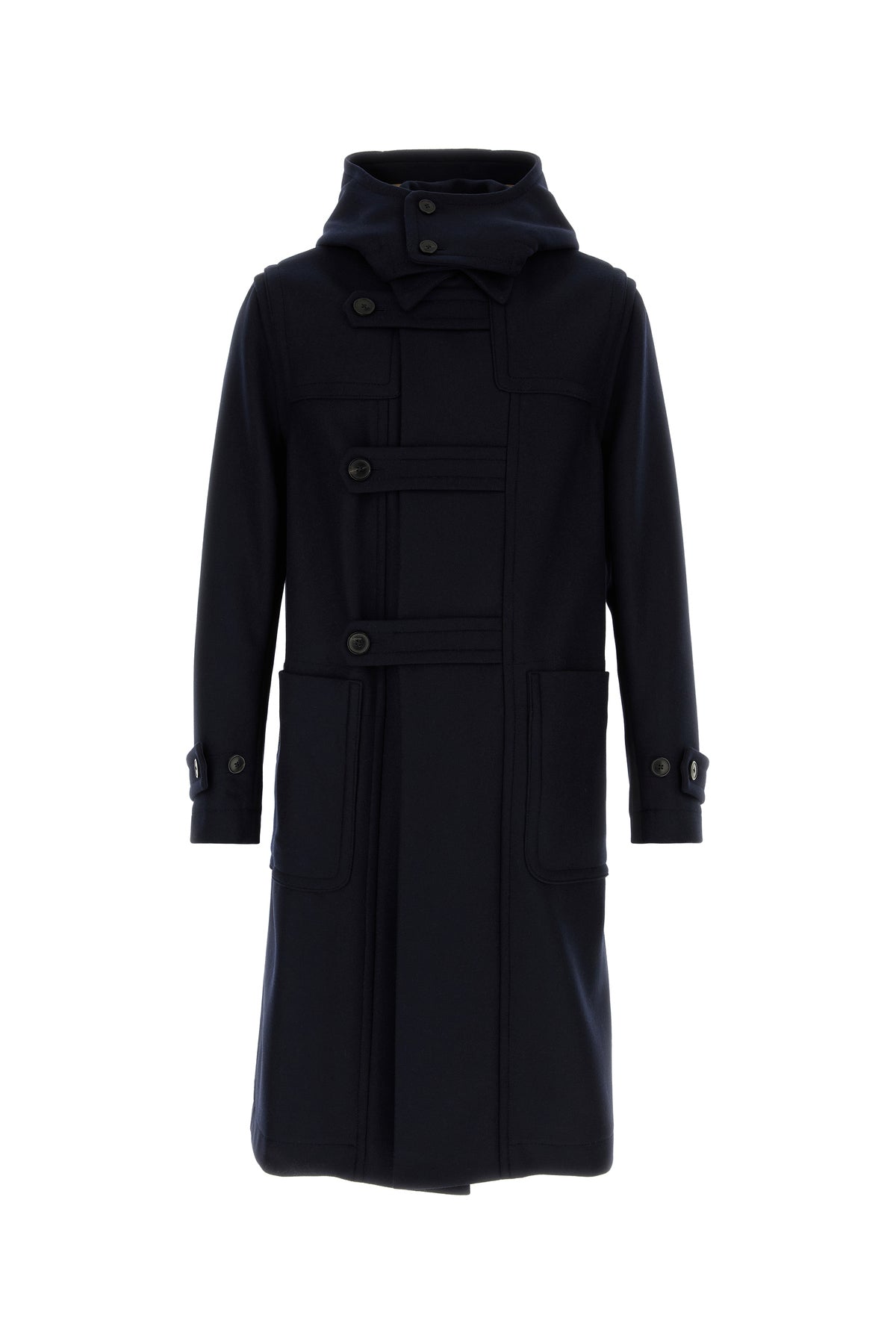 Coat realized in wool blend characterized by detachable high collar.