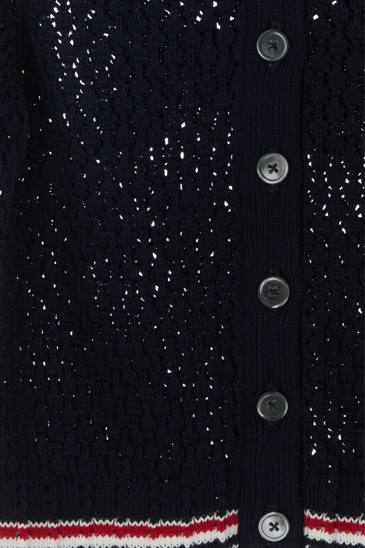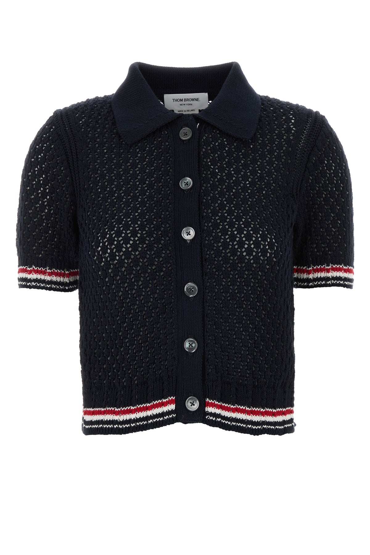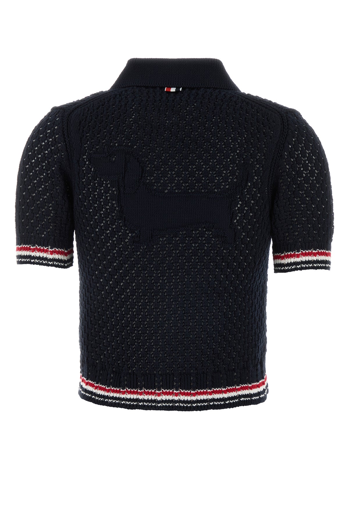 Short-sleeves cardigan realized in pure cotton crochet characterized by tonal Hector embroidery at the back enriched by iconic tricolor label at the back.