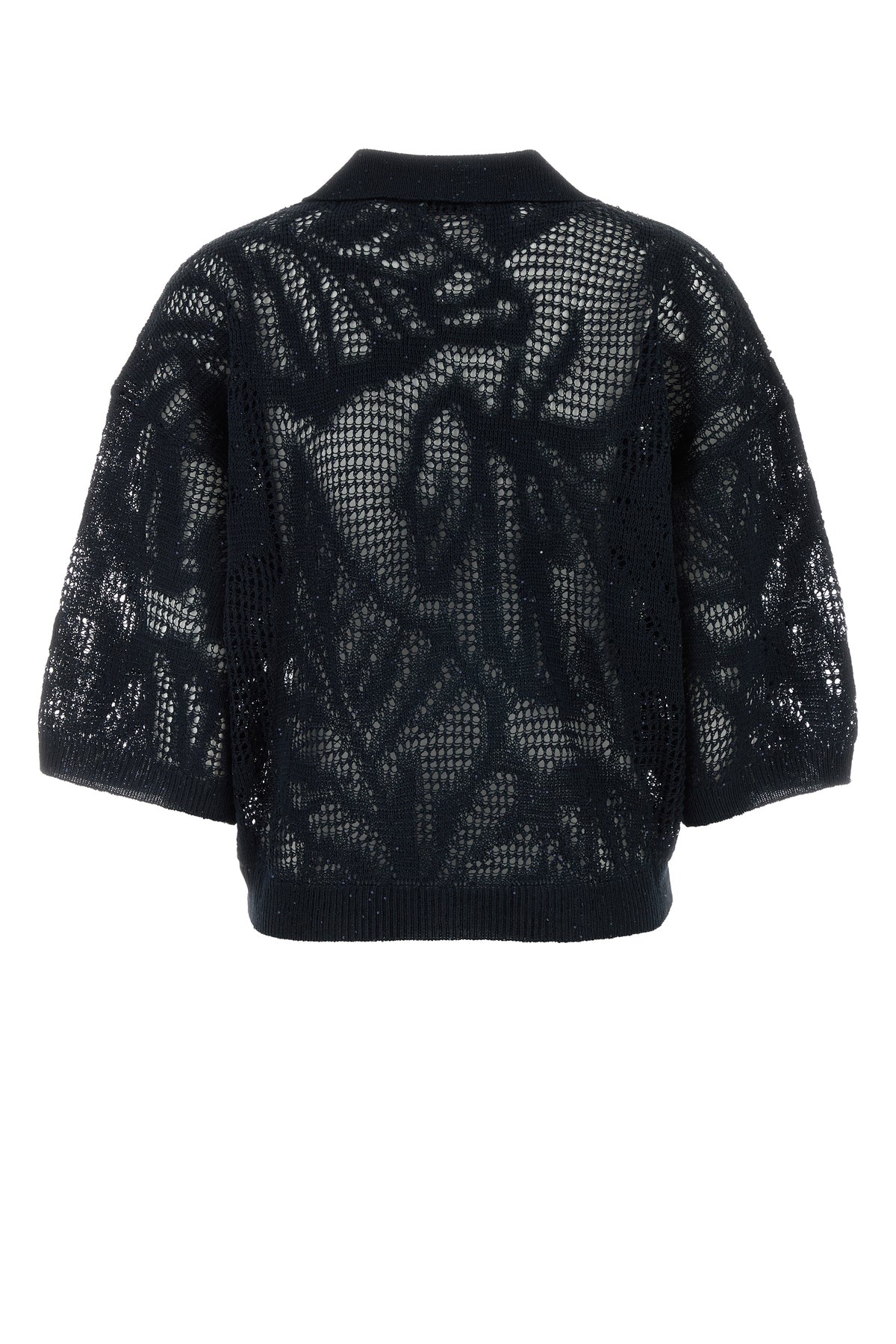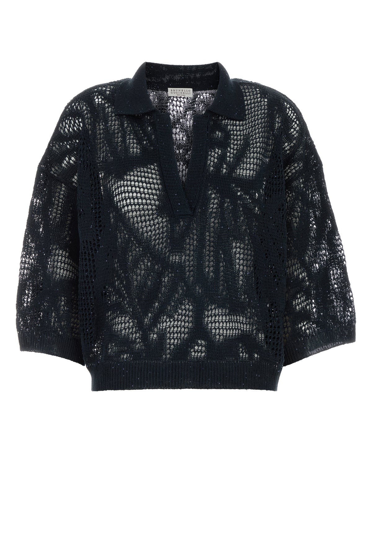 Polo shirt realized in linen and cotton crochet enriched by sequins on the entire surface.
