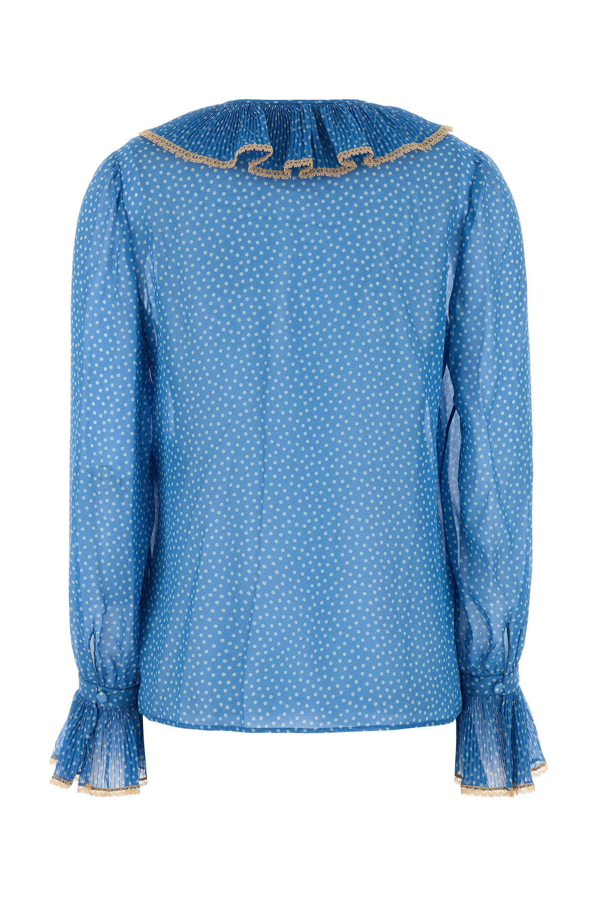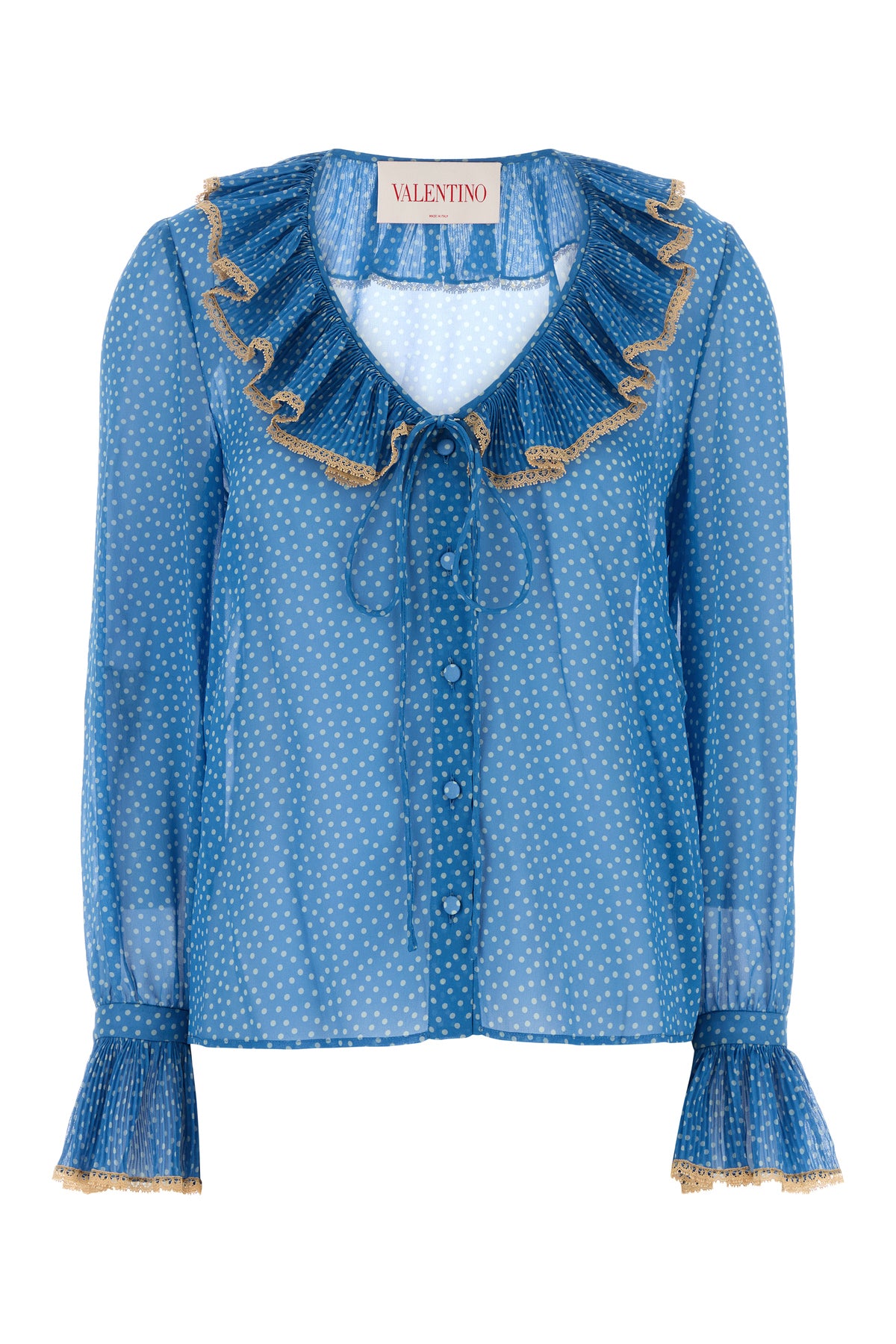 Blouse realized in pure silk characterized by polkadot motif print on the entire surface.