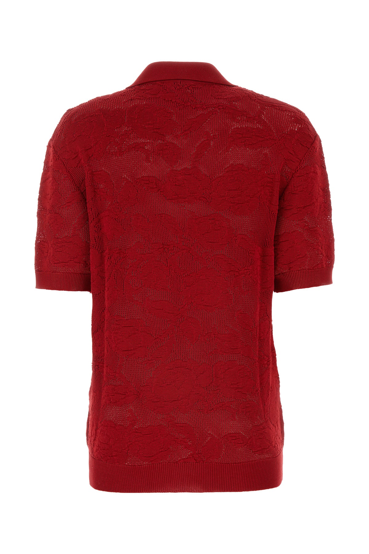 Polo shirt realized in pure cotton characterized by tonal floral emrbdoiery on the entire surface.