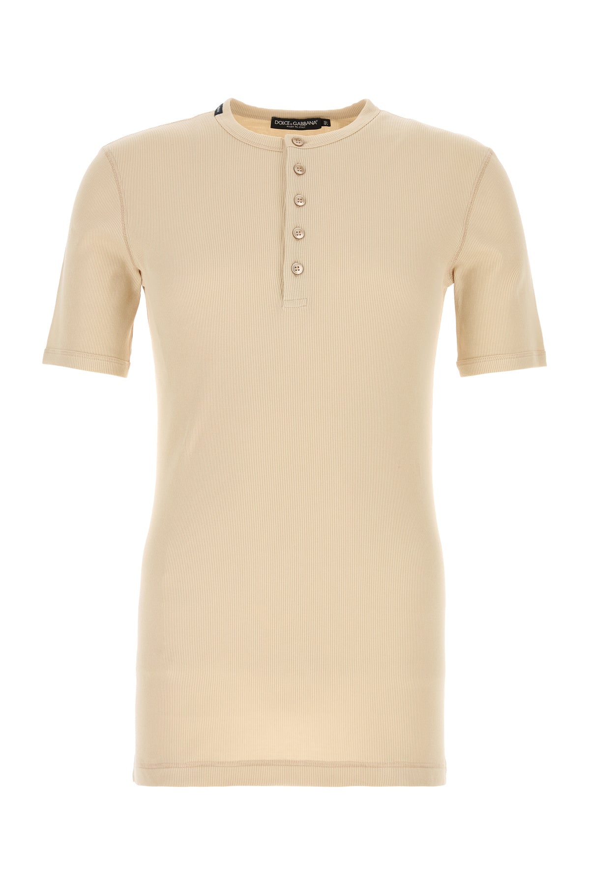 T-shirt realized in pure cotton characterized by ribbed crew-neck.