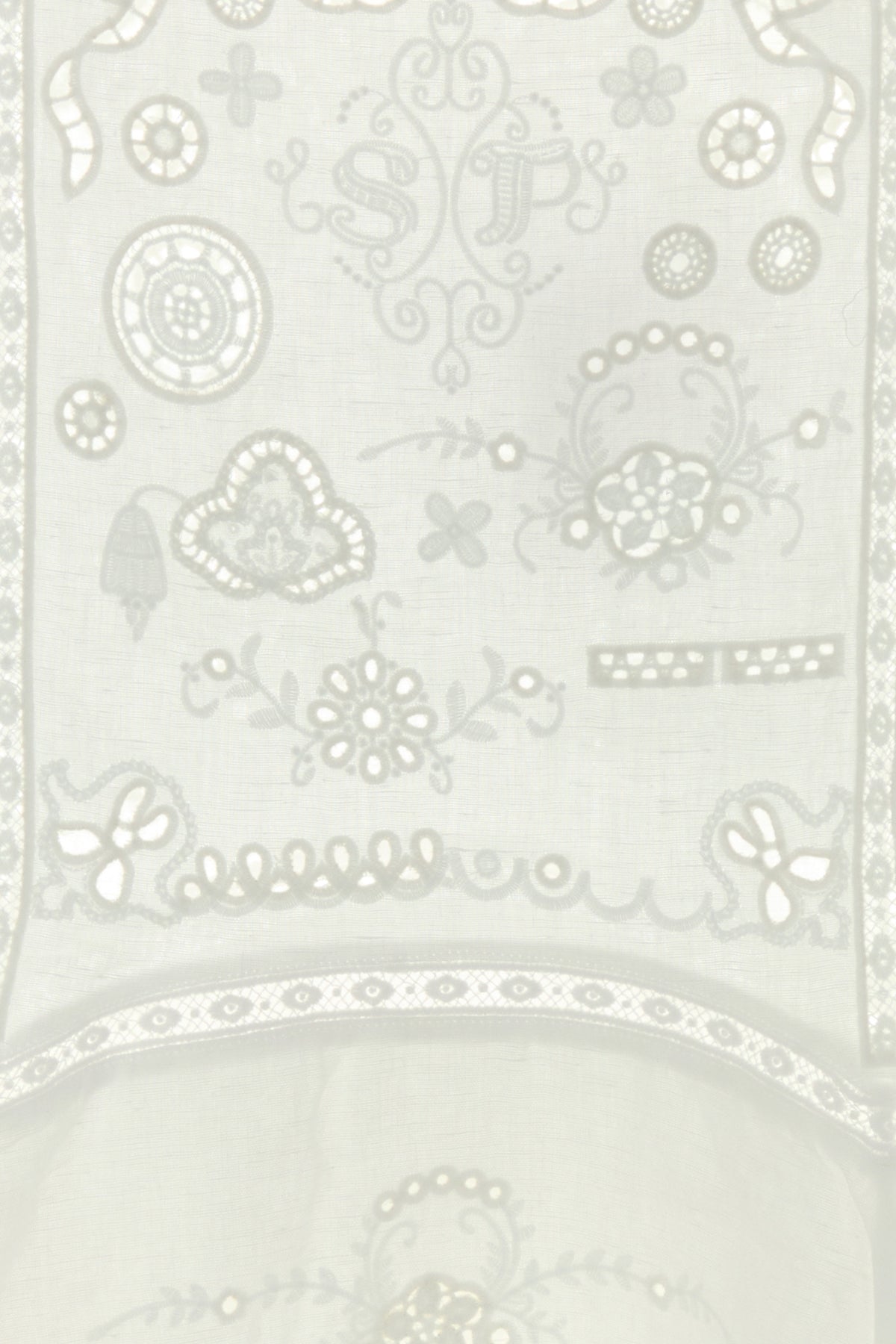 Dress realized in linen and cotton characterized by peculiar embroidery on the entire surface.