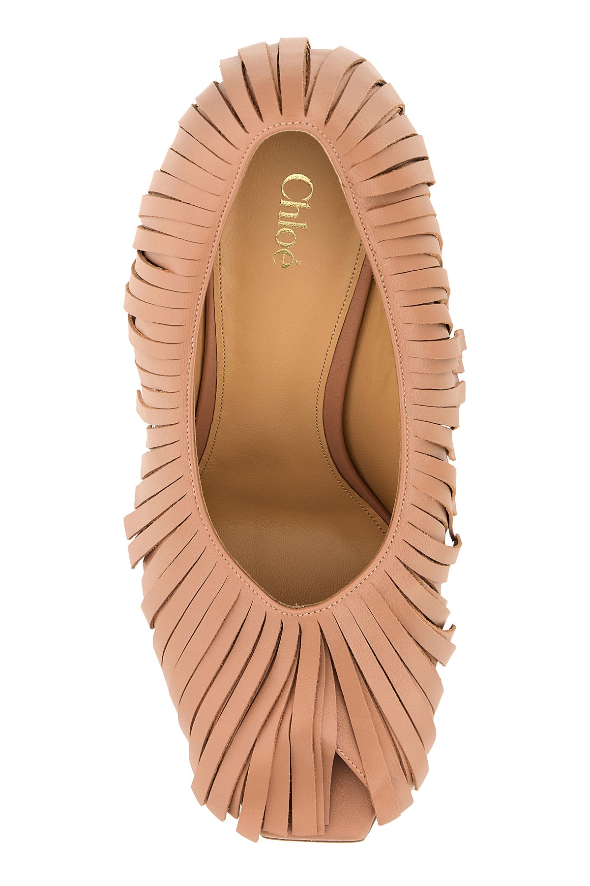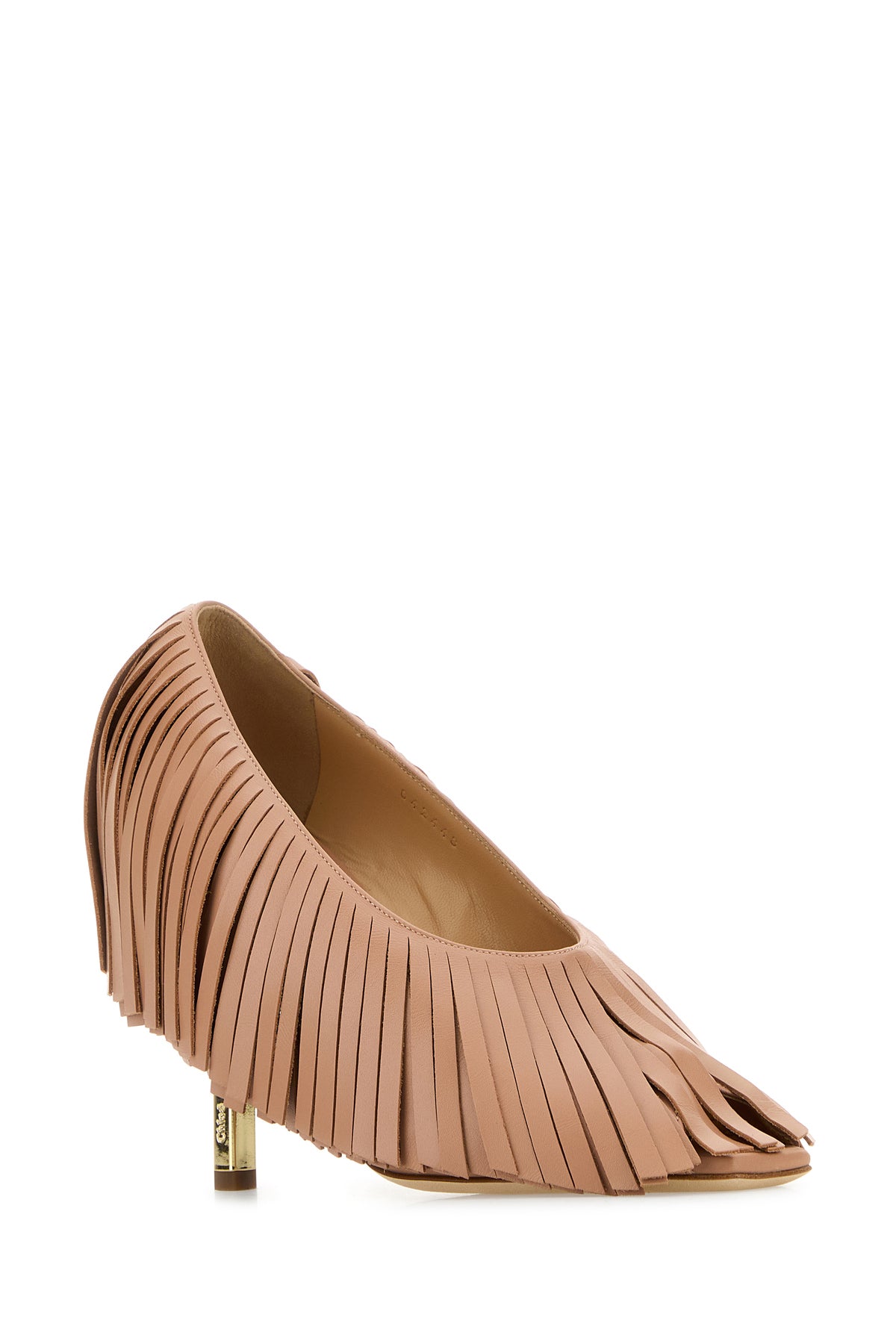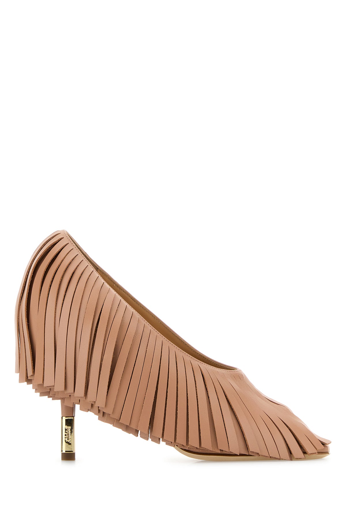 Pumps realized in smooth calf leather enriched by tonal leather fringes on the entire surface.