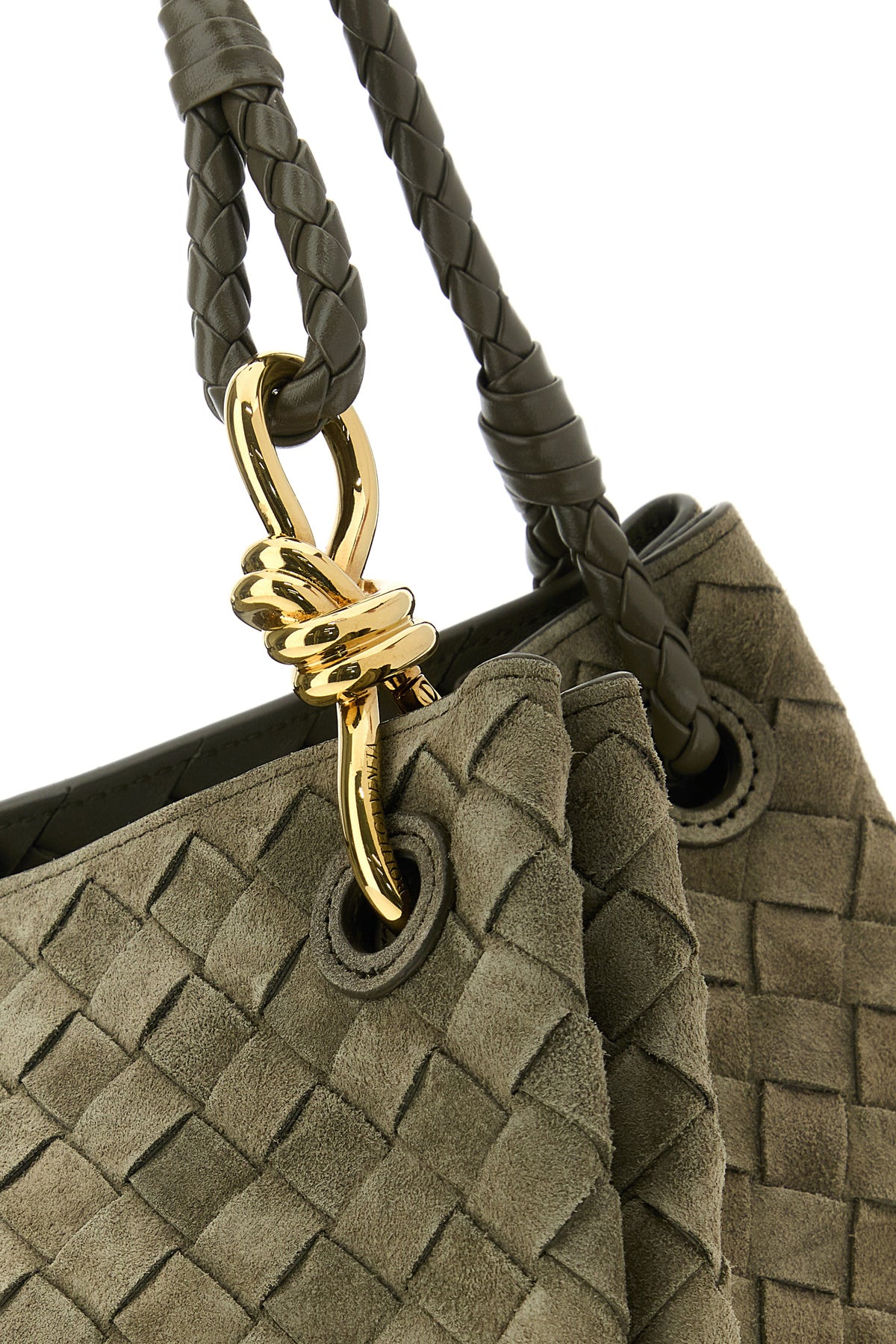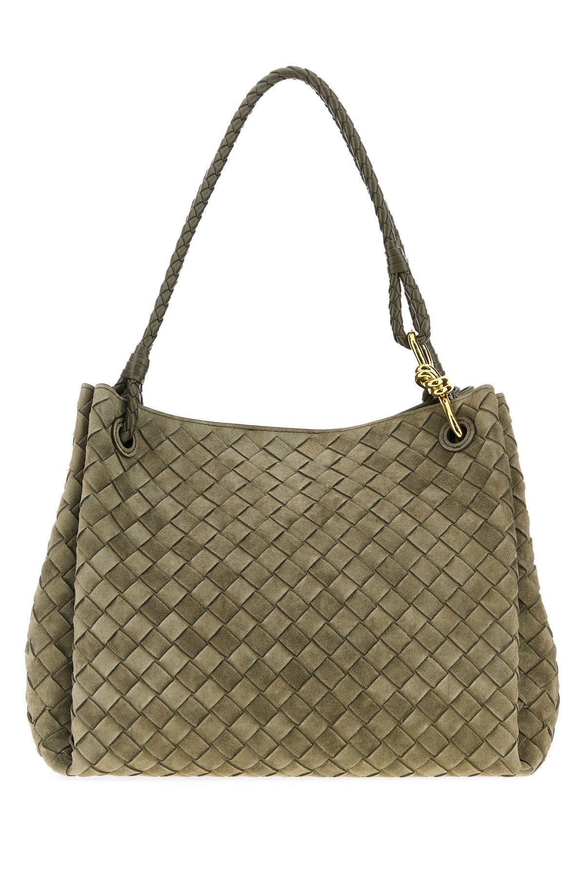 Shoulder bag realized in suede characterized by Intrecciato moil on the entire surface enriched by Knot metal detail.