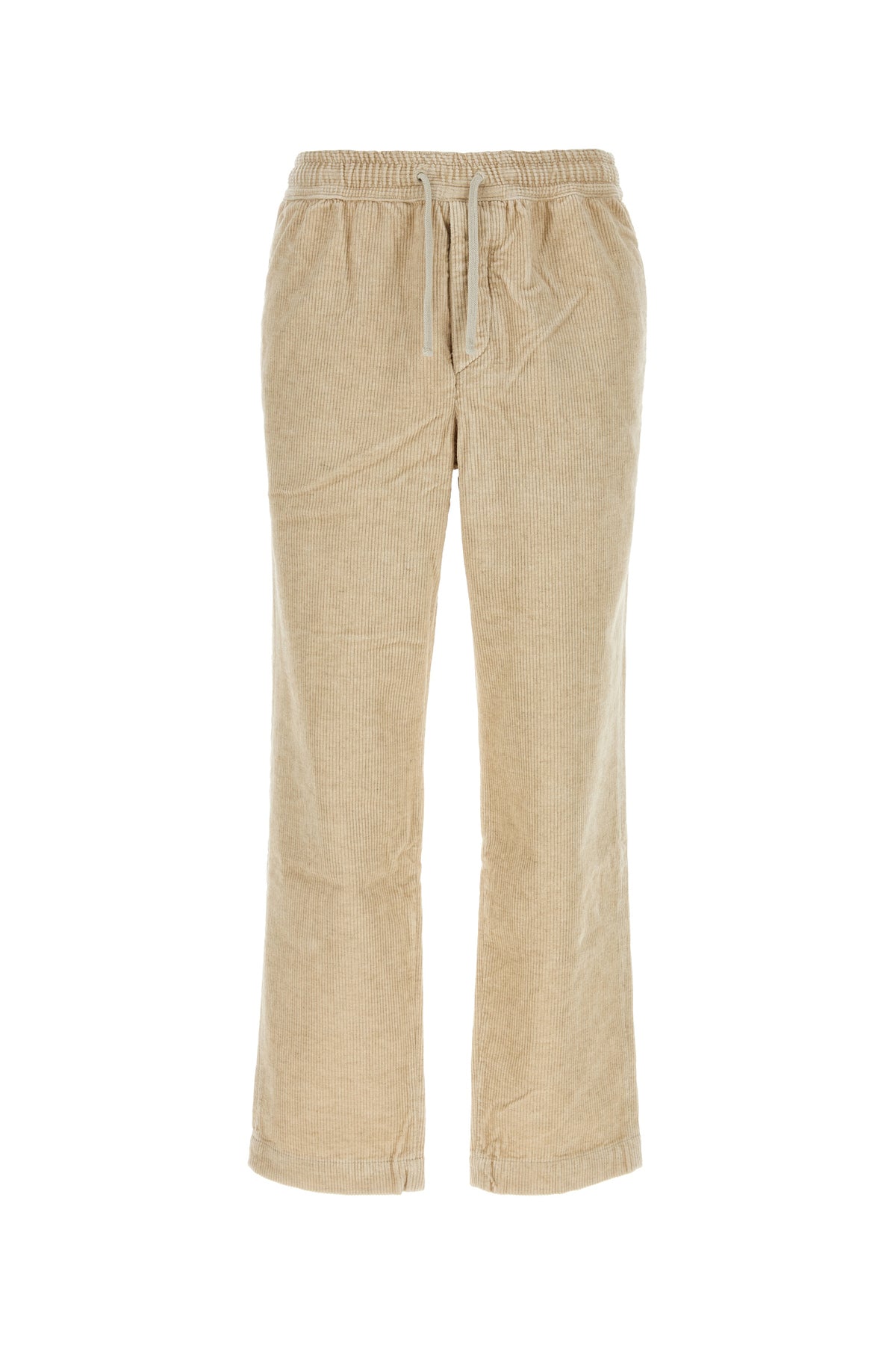 Pant realized in cotton and linen corduroy characterized by elastic waist with drawstring.