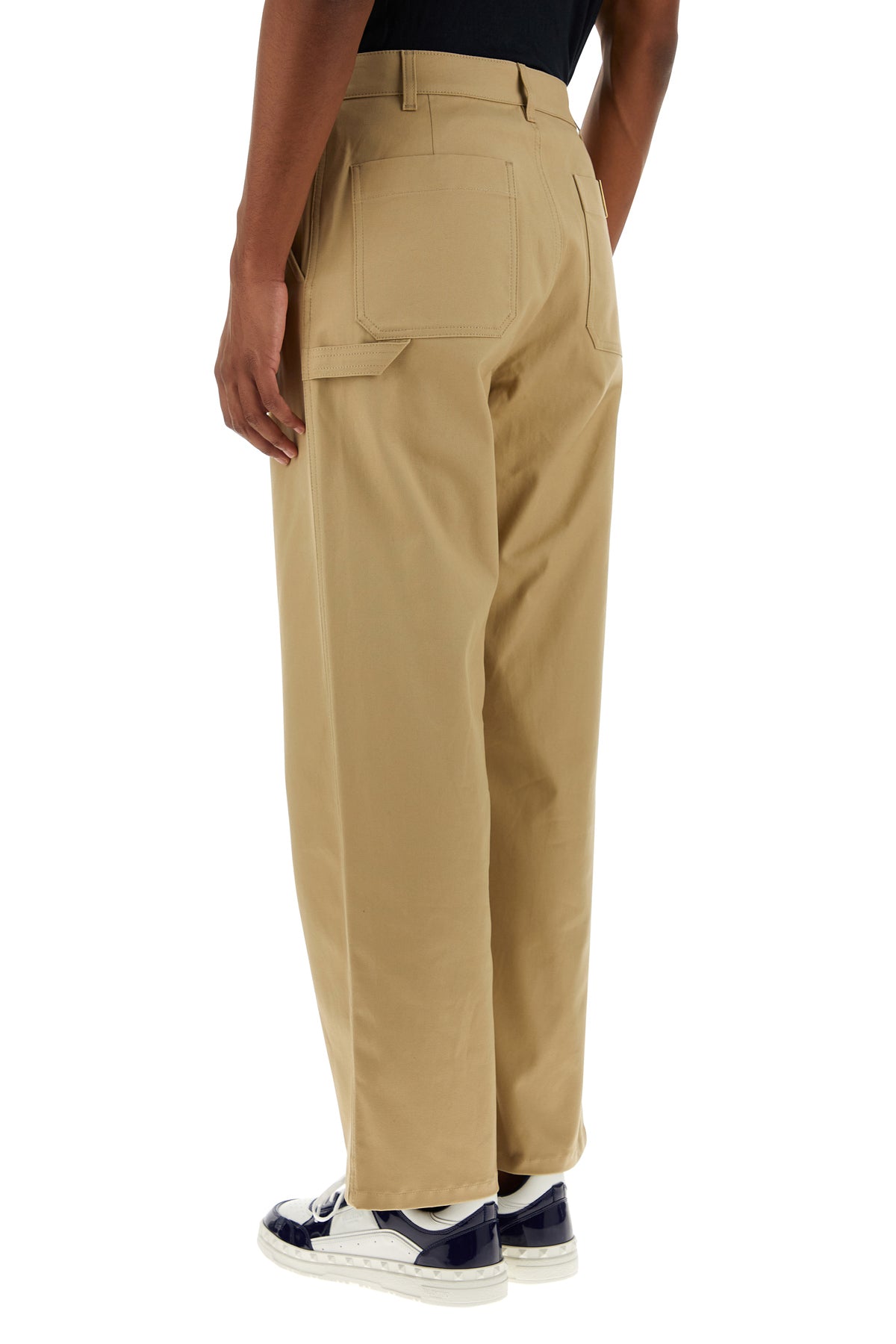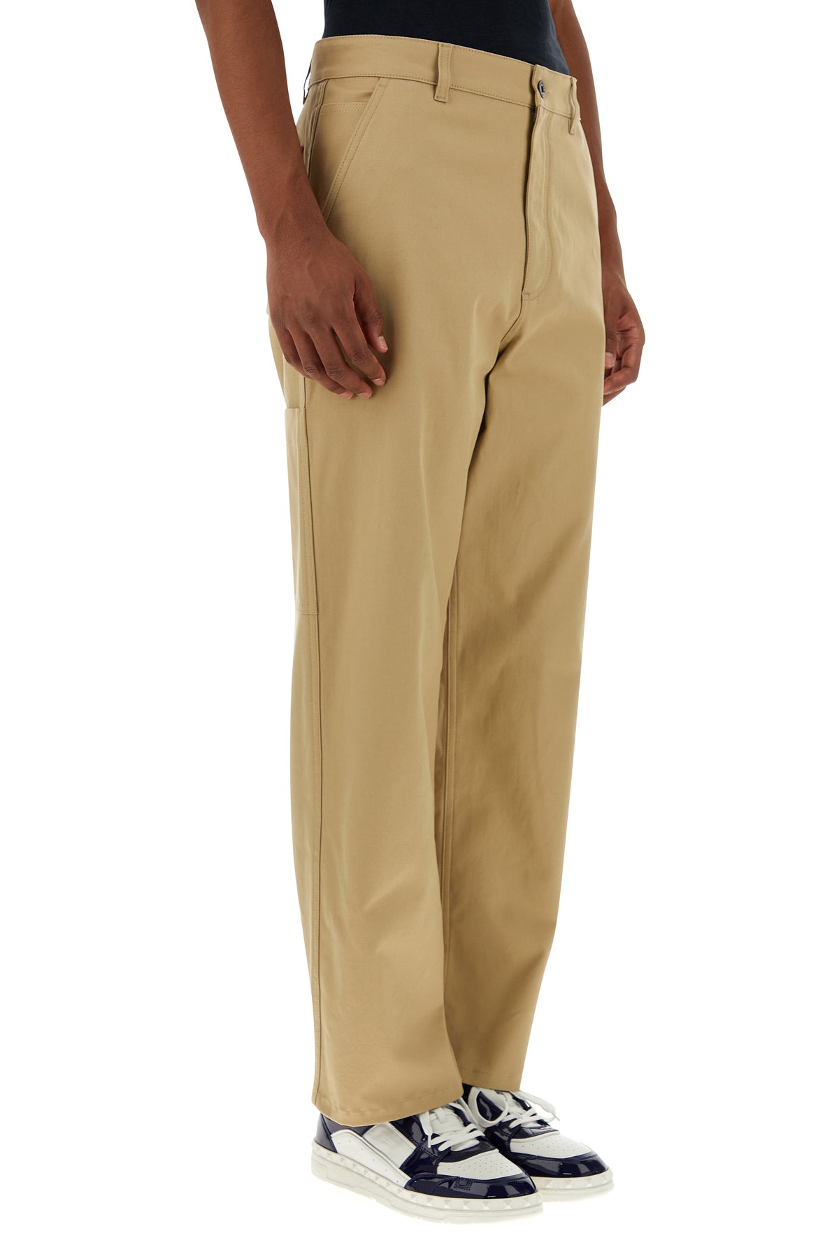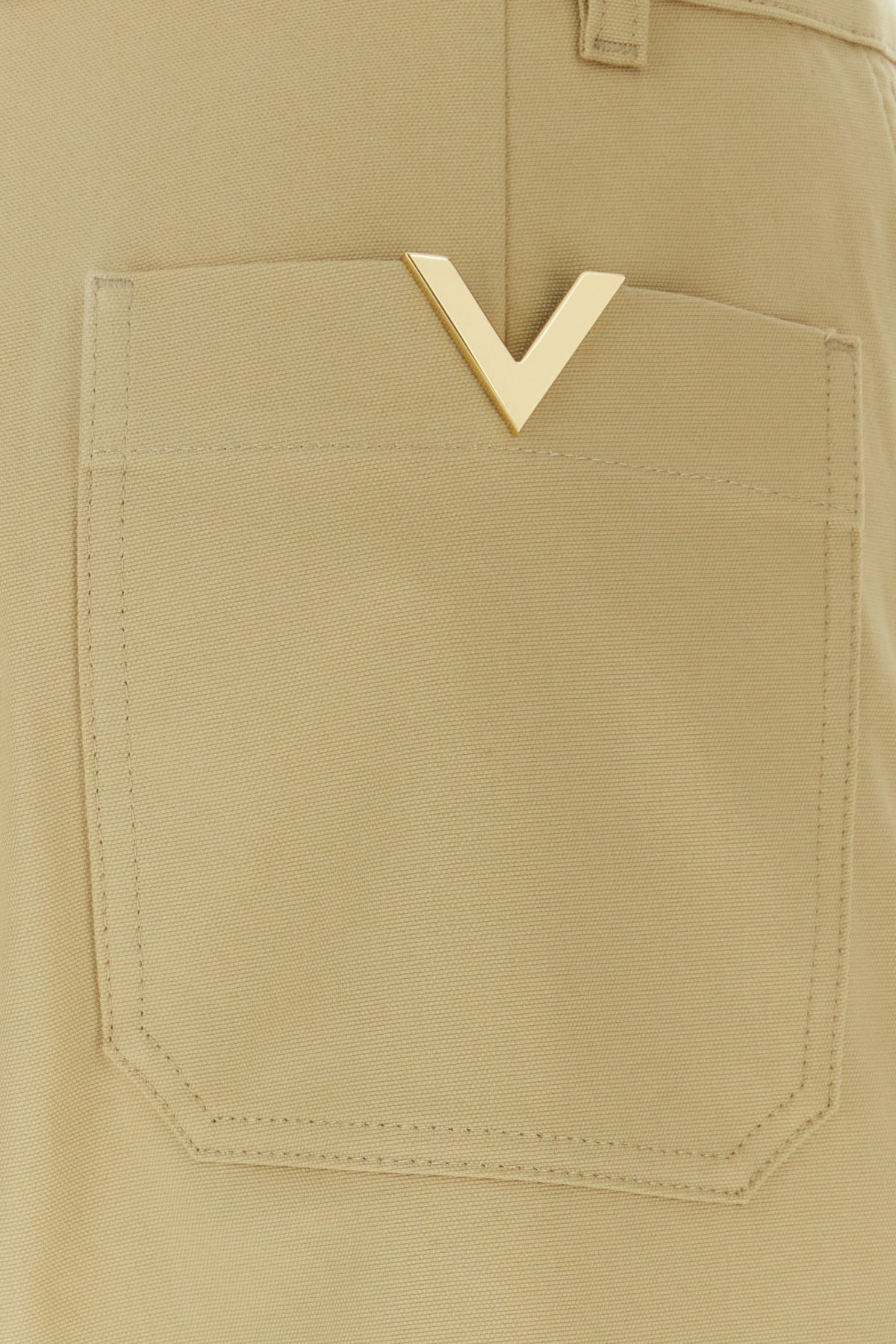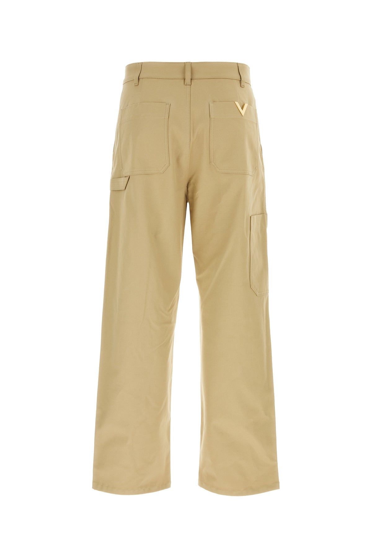 Pant realized in stretch cotton enriched by V metal detail at the back.