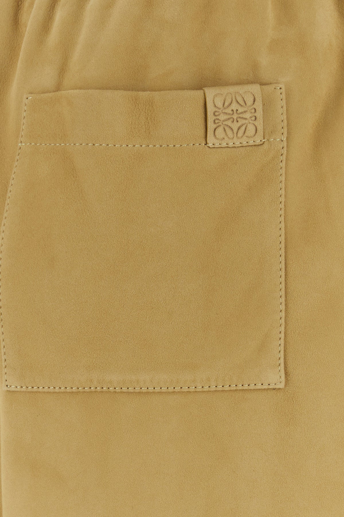 Shorts realized in suede characterized by embossed Anagram motif at the back.