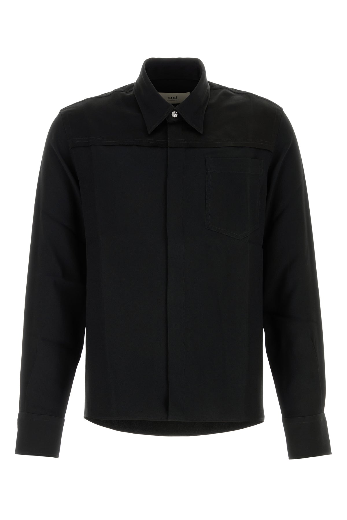 Shirt realized in acetate blend enriched by logoed metal plate at the back.