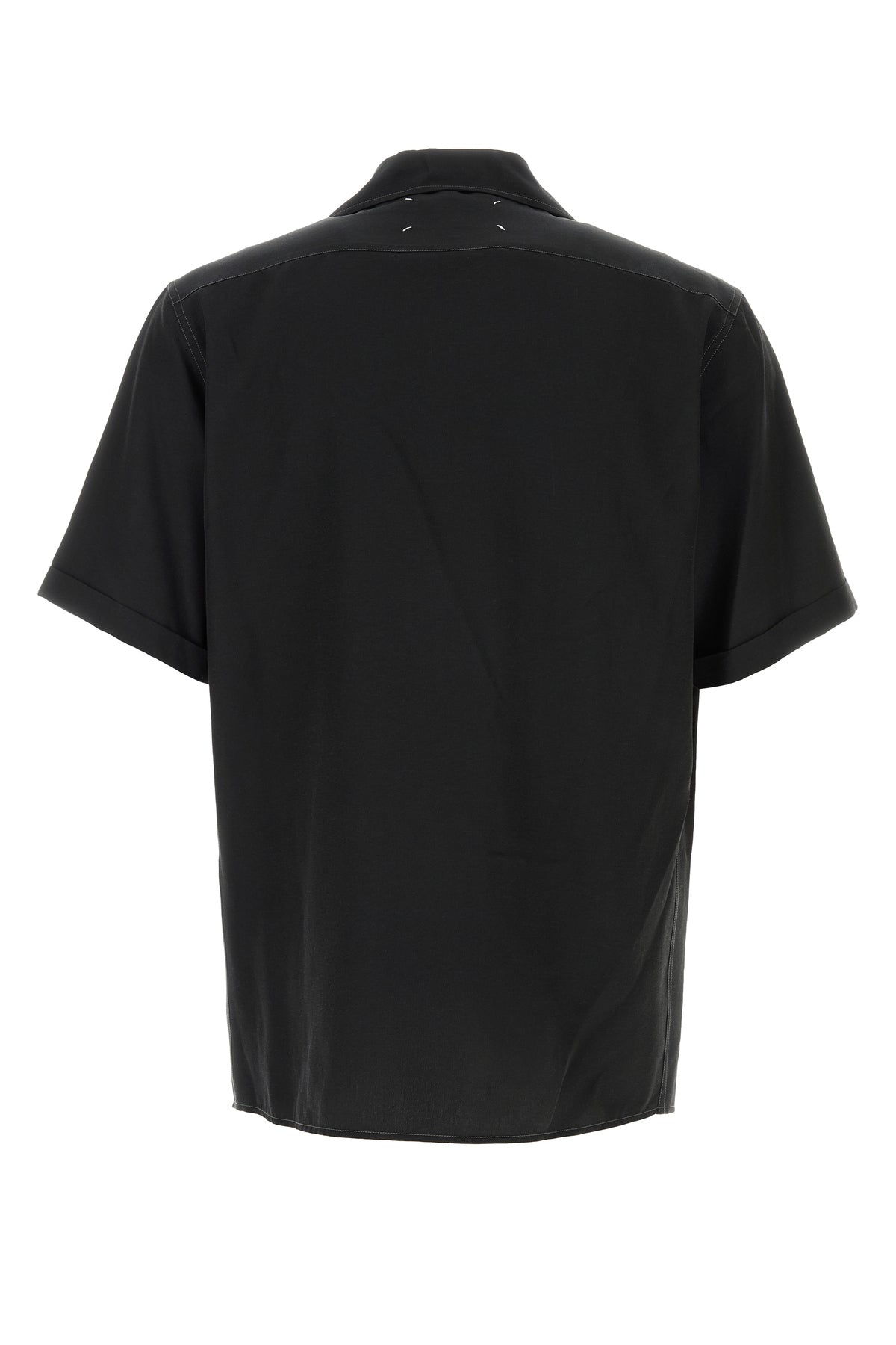 Short-sleeves shirt realized in acetate blend characterized by iconic contrasting stitching at the back.