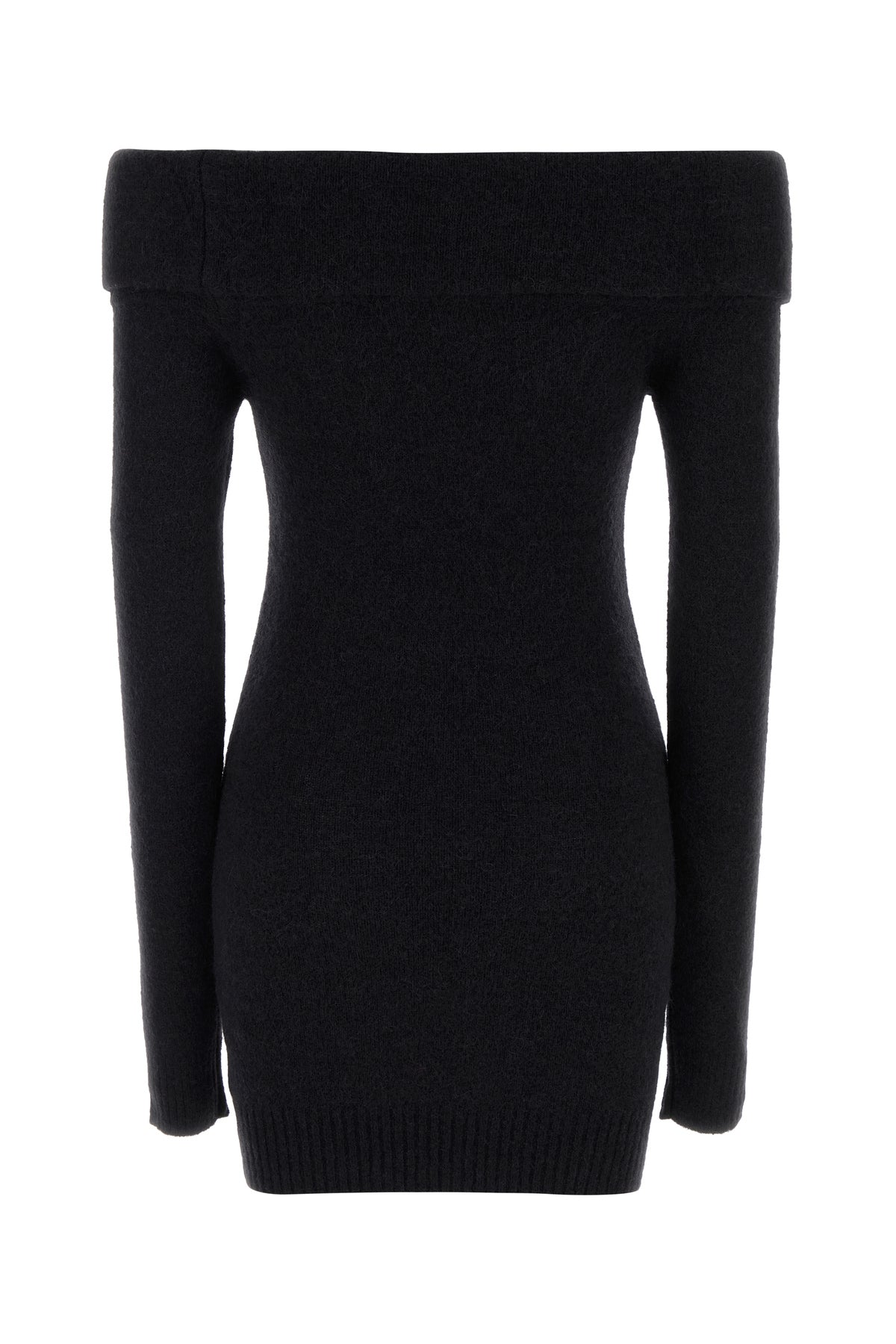 Black alpaca blend off-the-shoulder mini dress