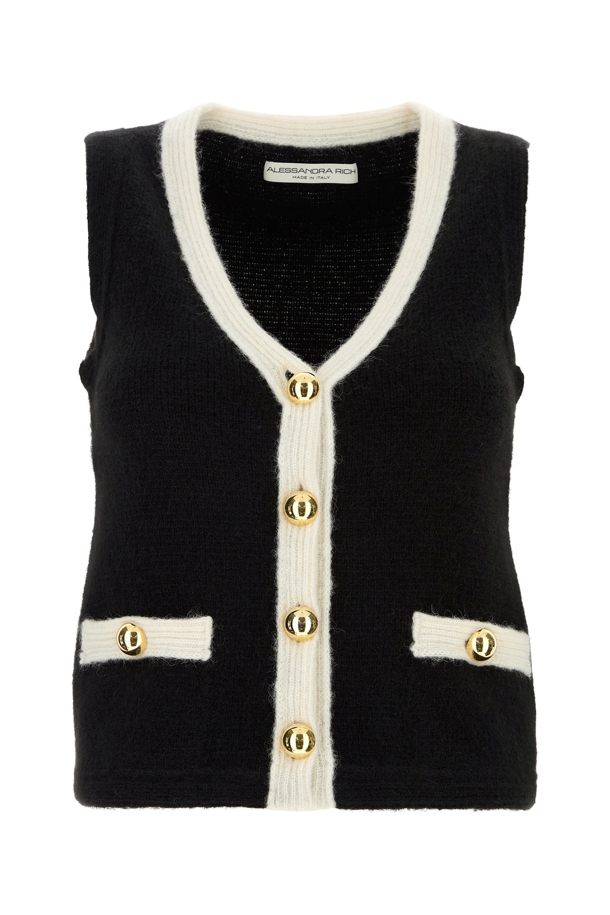 Vest realized in alpaca blend characterized by jewel buttons closure.