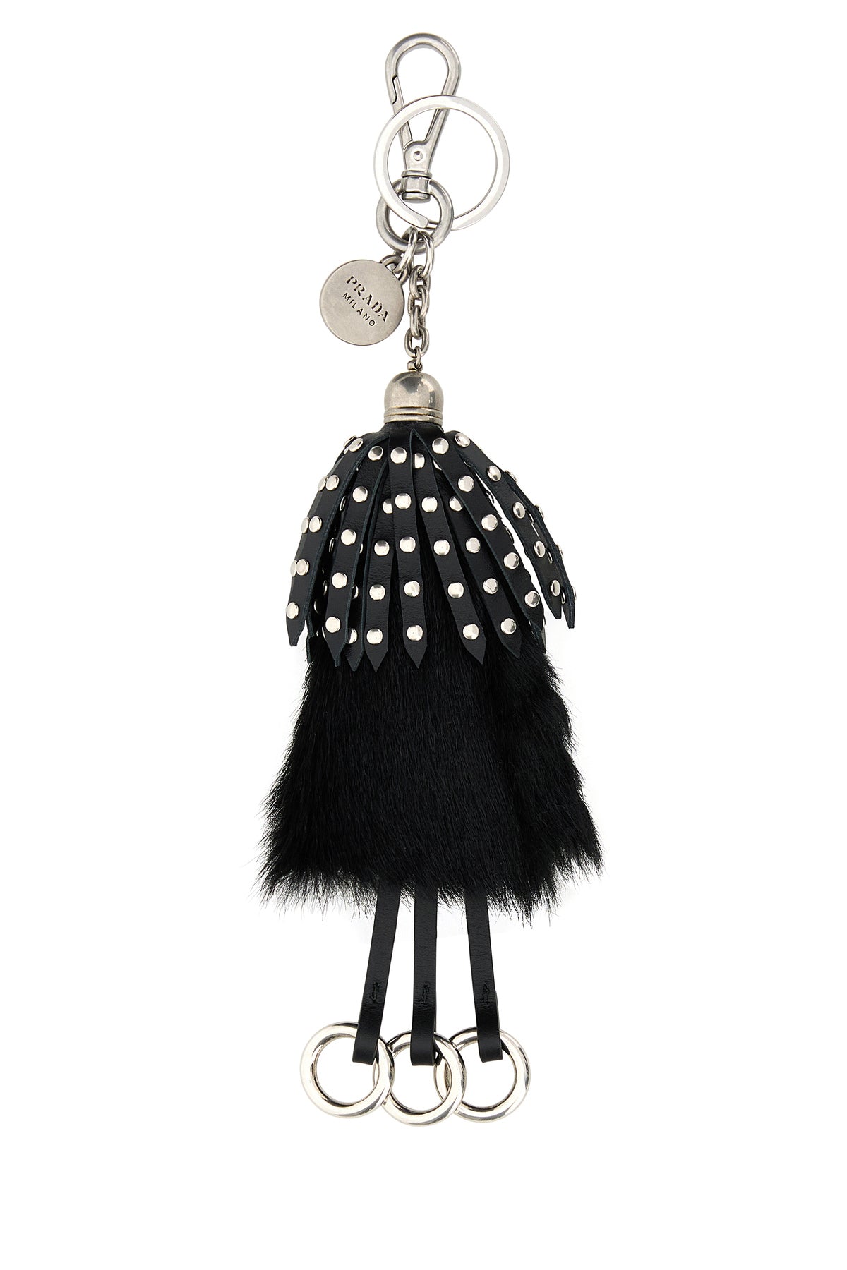 Black calf hair and leather keyring