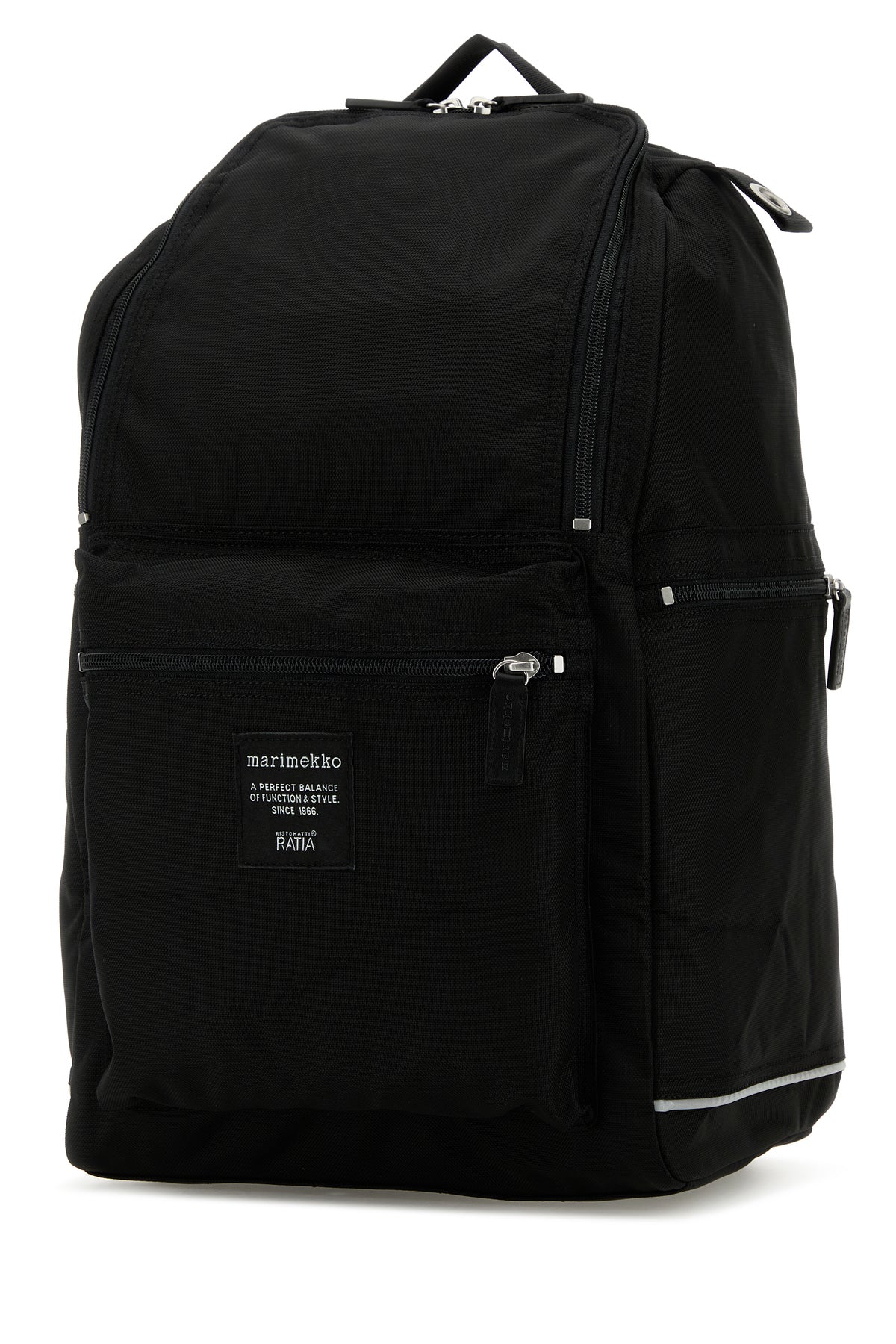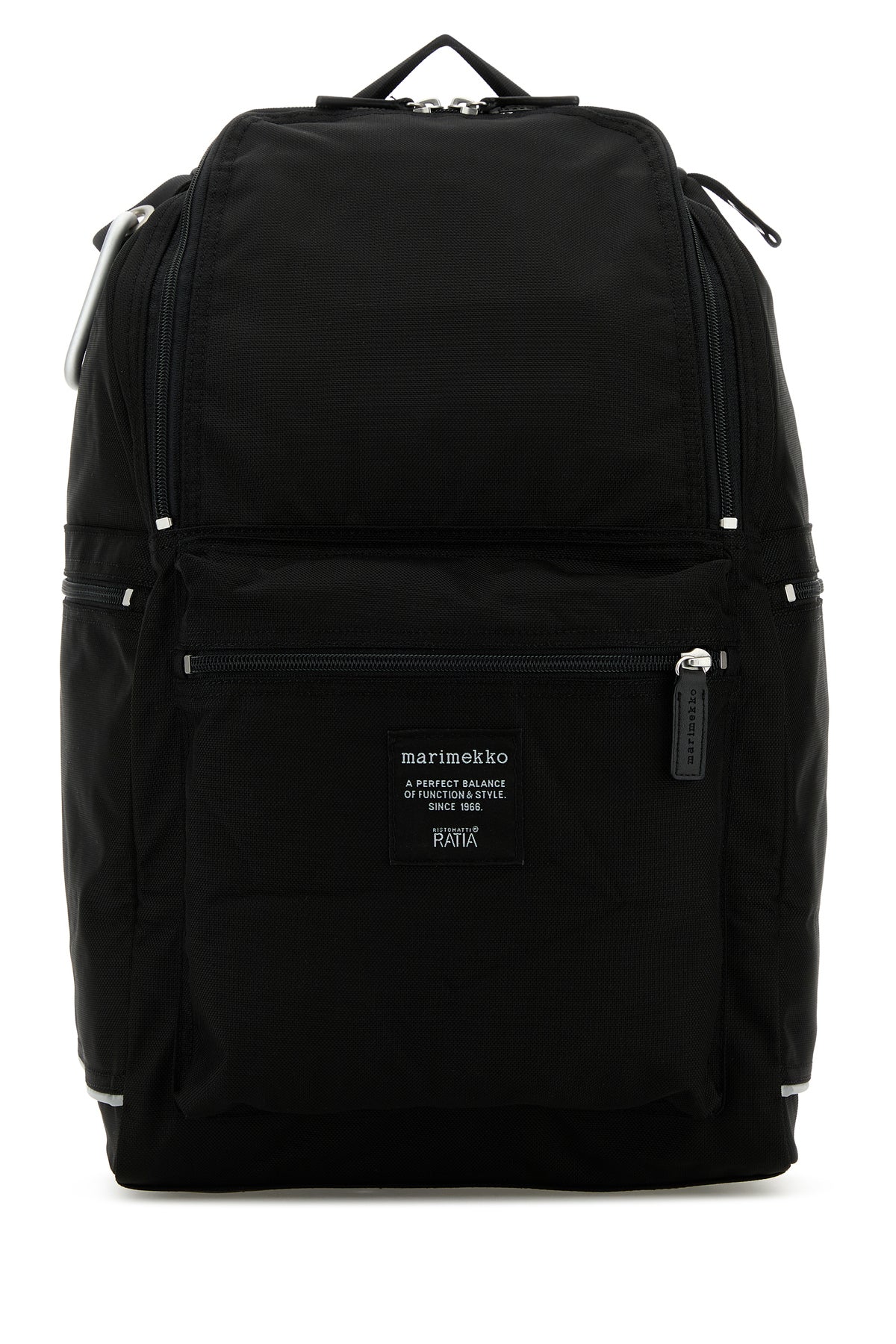 - A zip pocket at the front, two zip pockets on the sides and a zip pocket at the back