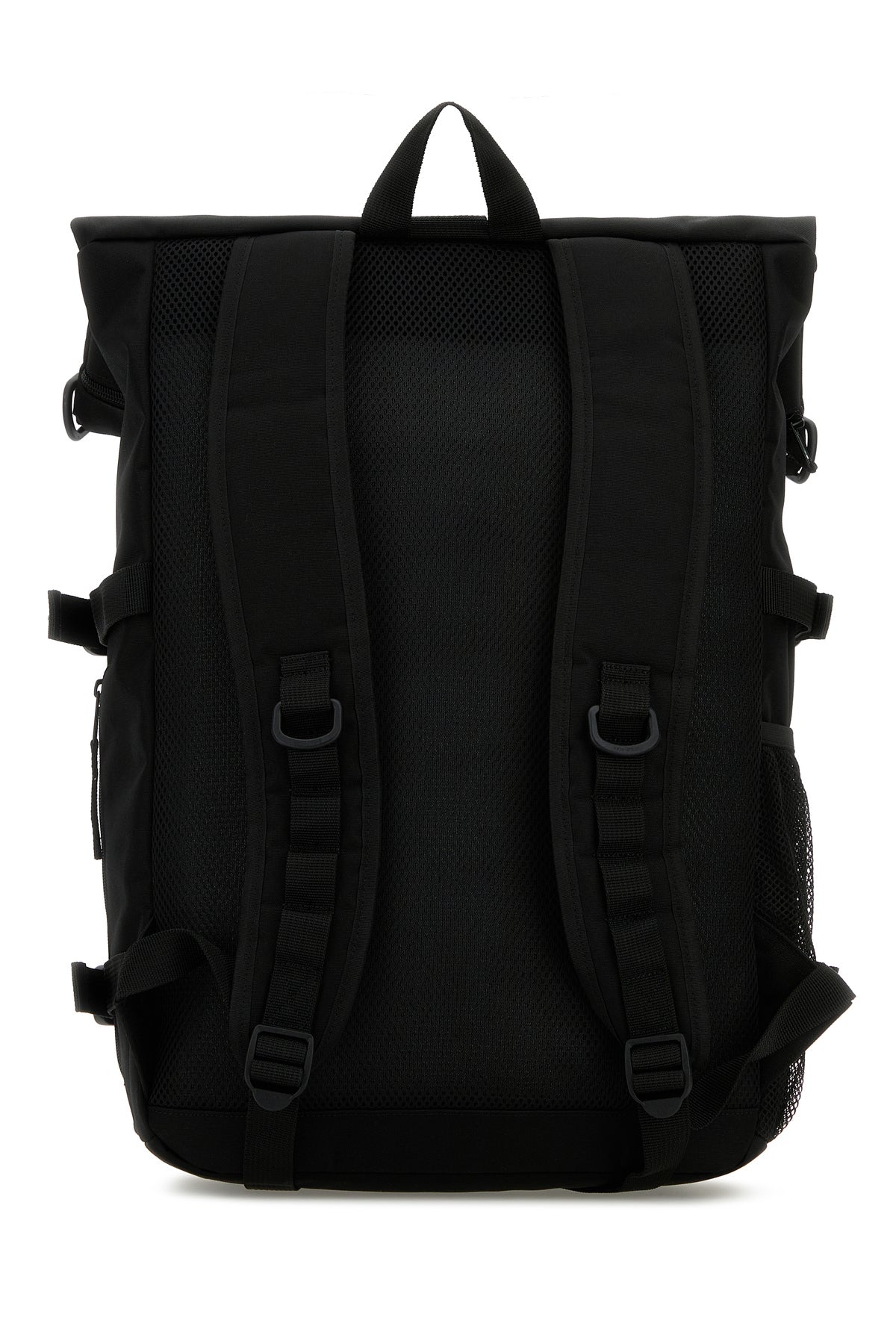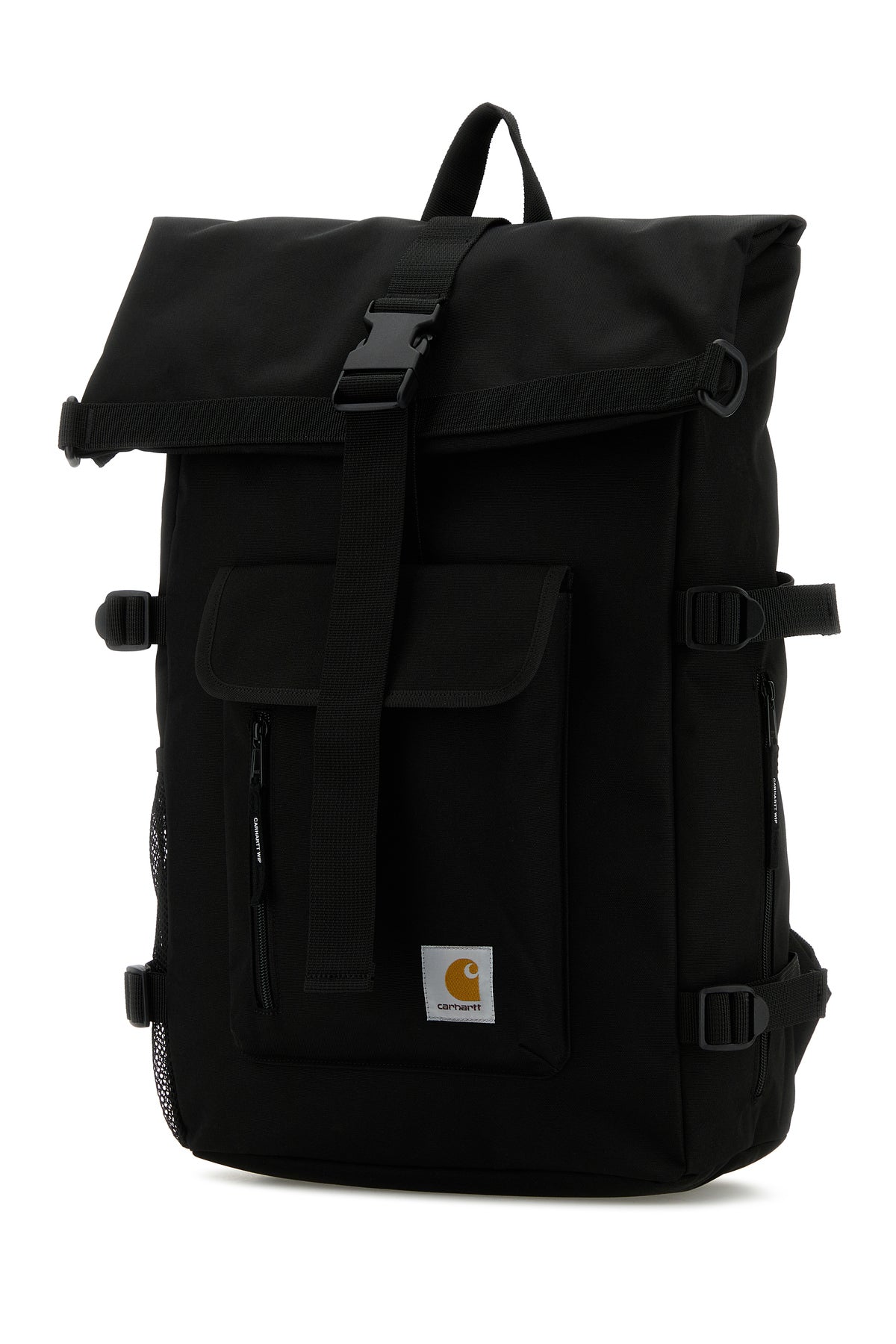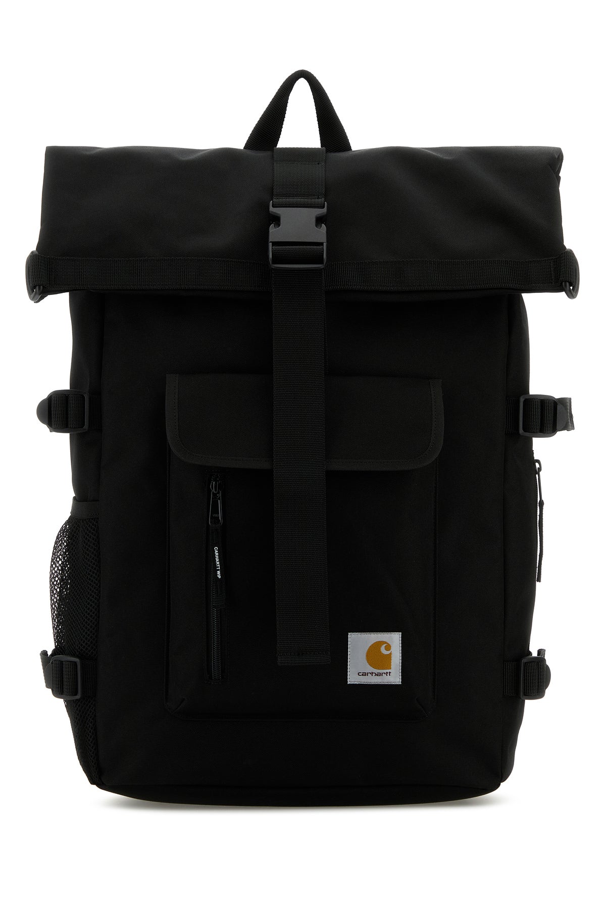 Backpack realized in canvas enriched by contrasting logoed label at the front.