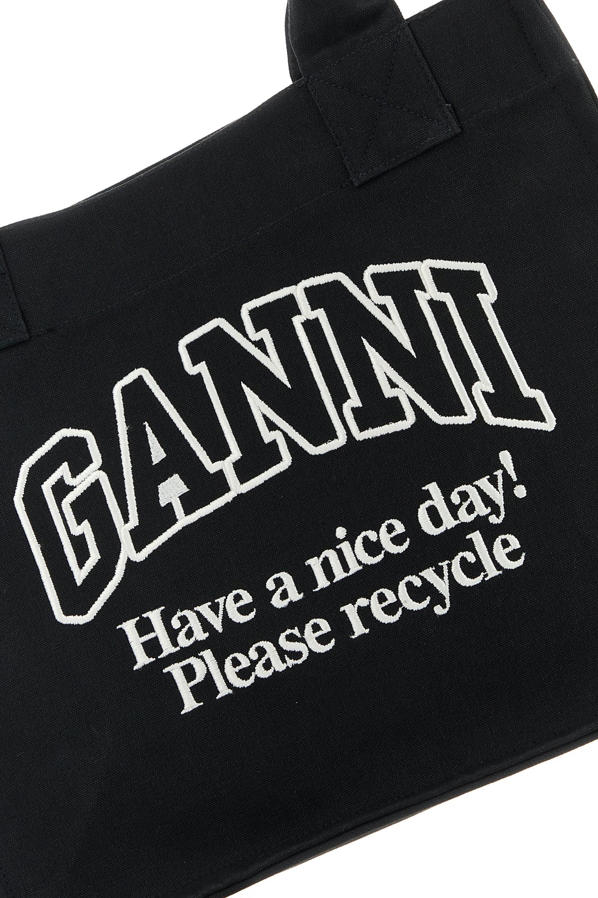 Shopping bag realized in canvas characterized by contrasting embroidered logo at the front.