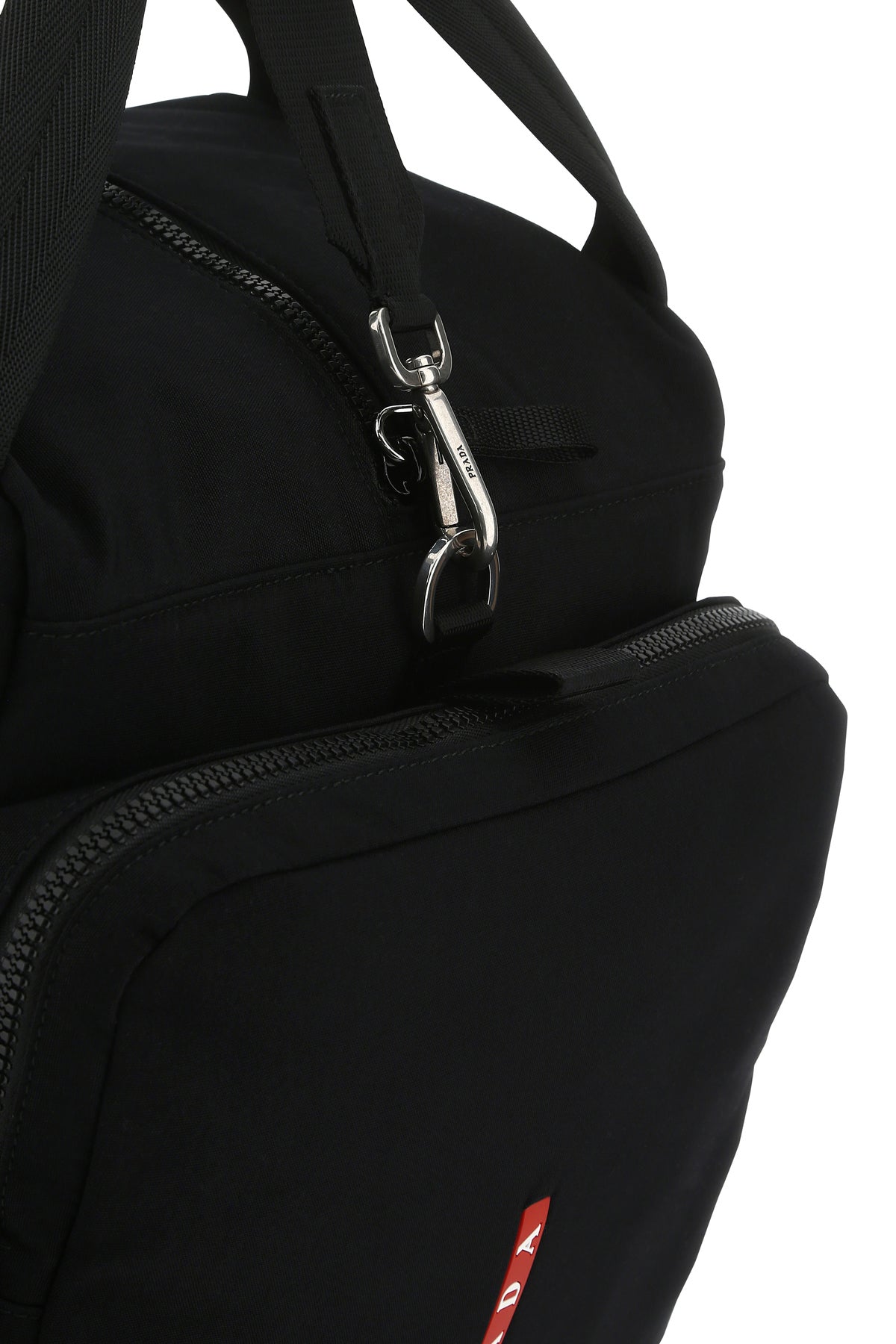 Travel bag realized in nylon canvas characterized by contrasting rubberized logoed detail at the front.