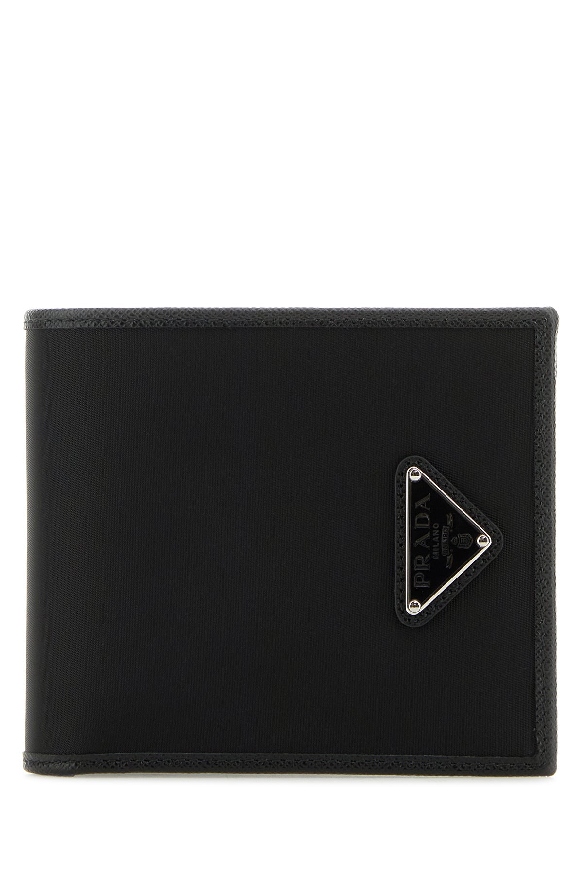 Wallet realized in canvas enriched by iconic logoed metal triangle at the front.