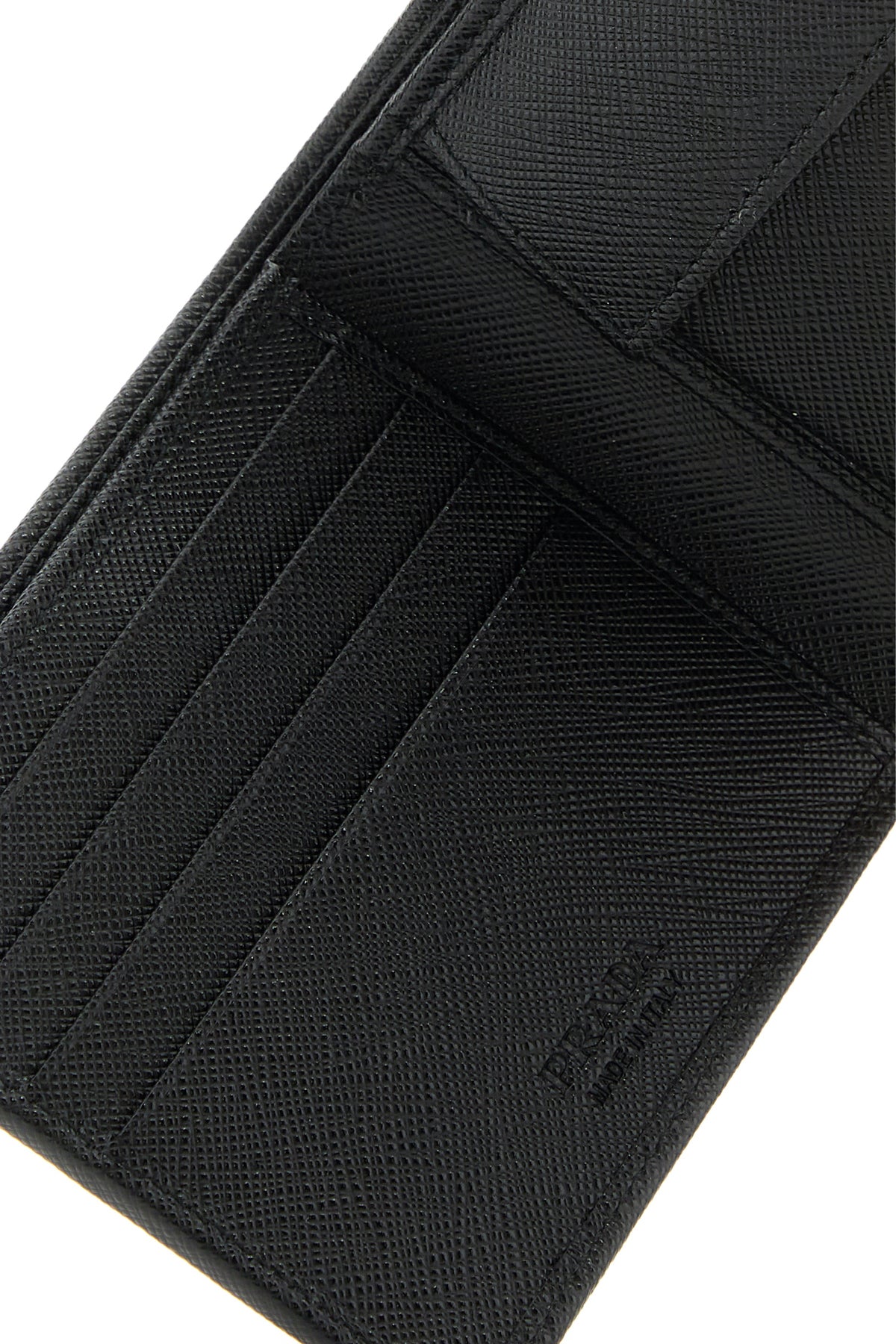 - Interior with two bill compartments, a coin pocket, three slit pockets and four credit card slots