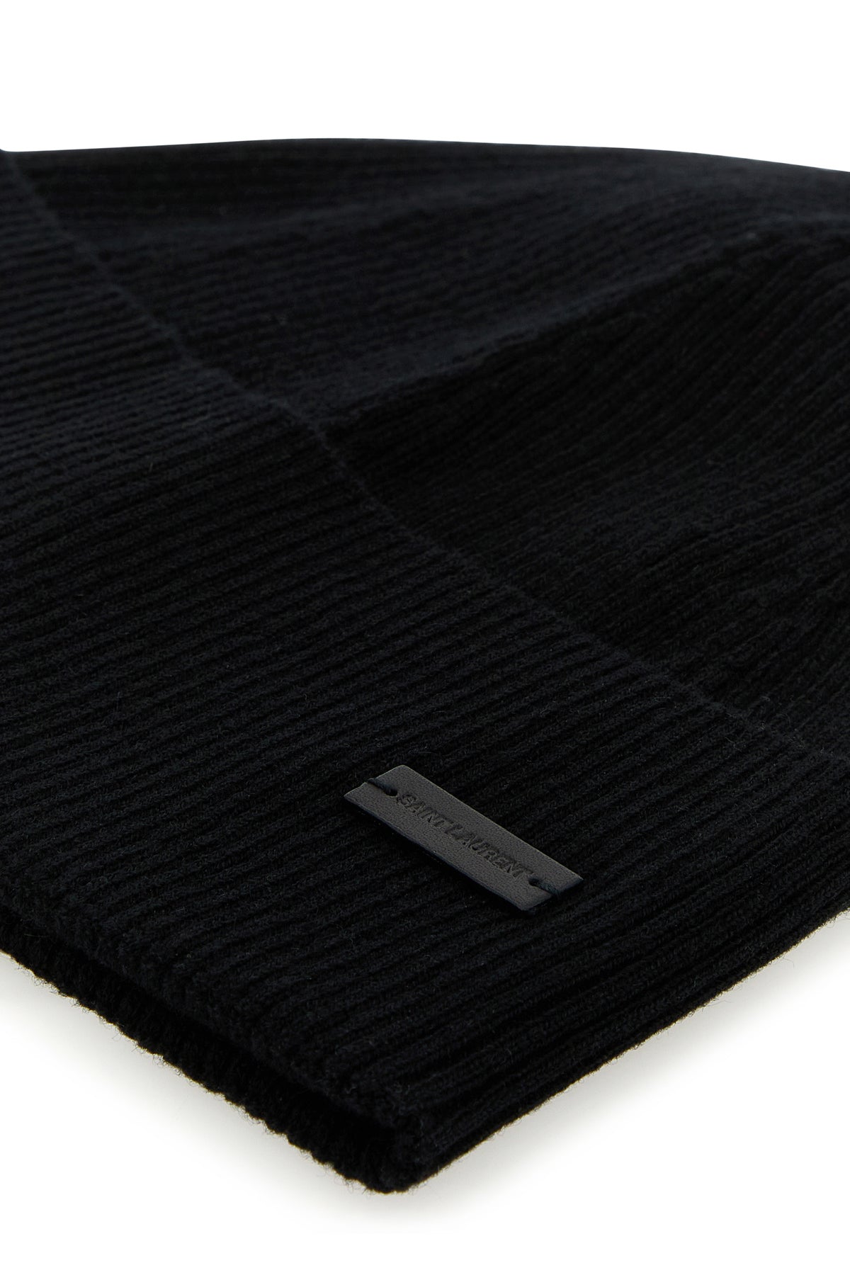 Beanie hat realized in ribbed pure cotton enriched by tonal leather logoed label at the front.