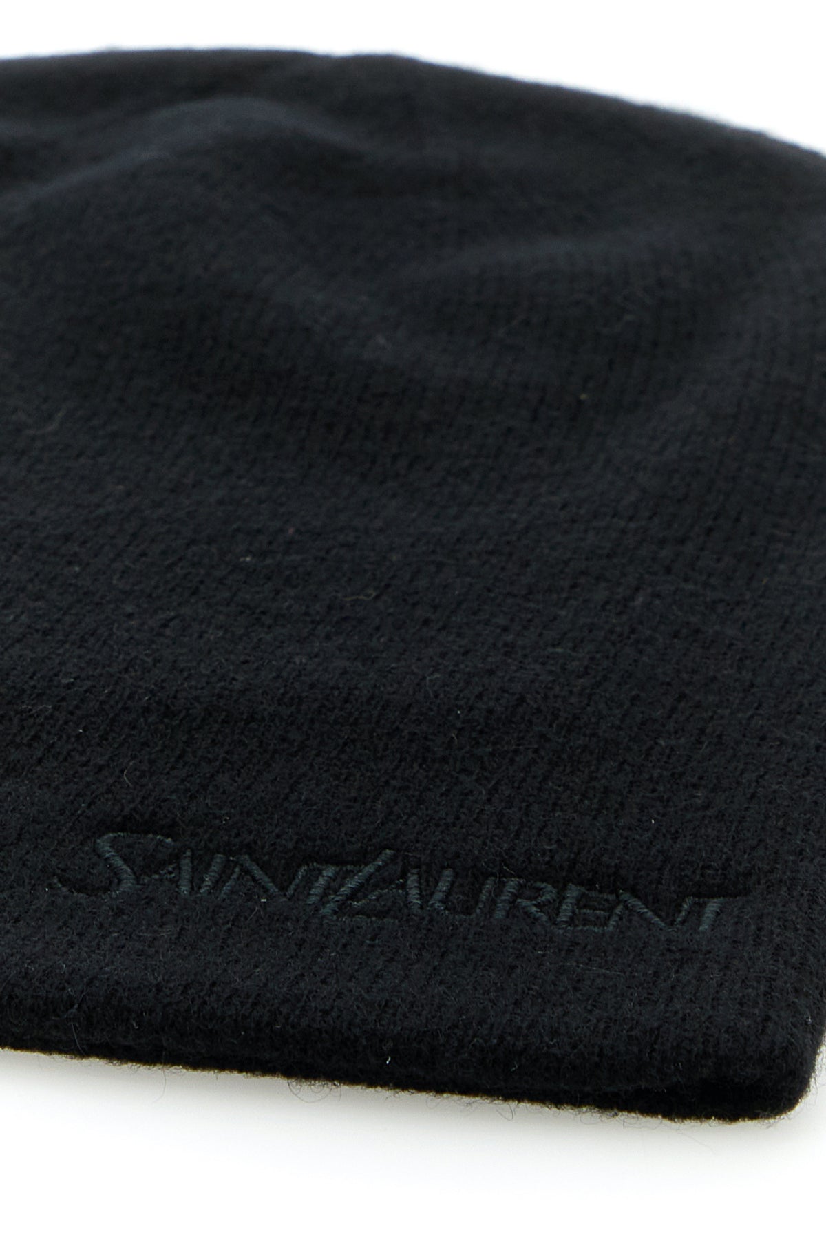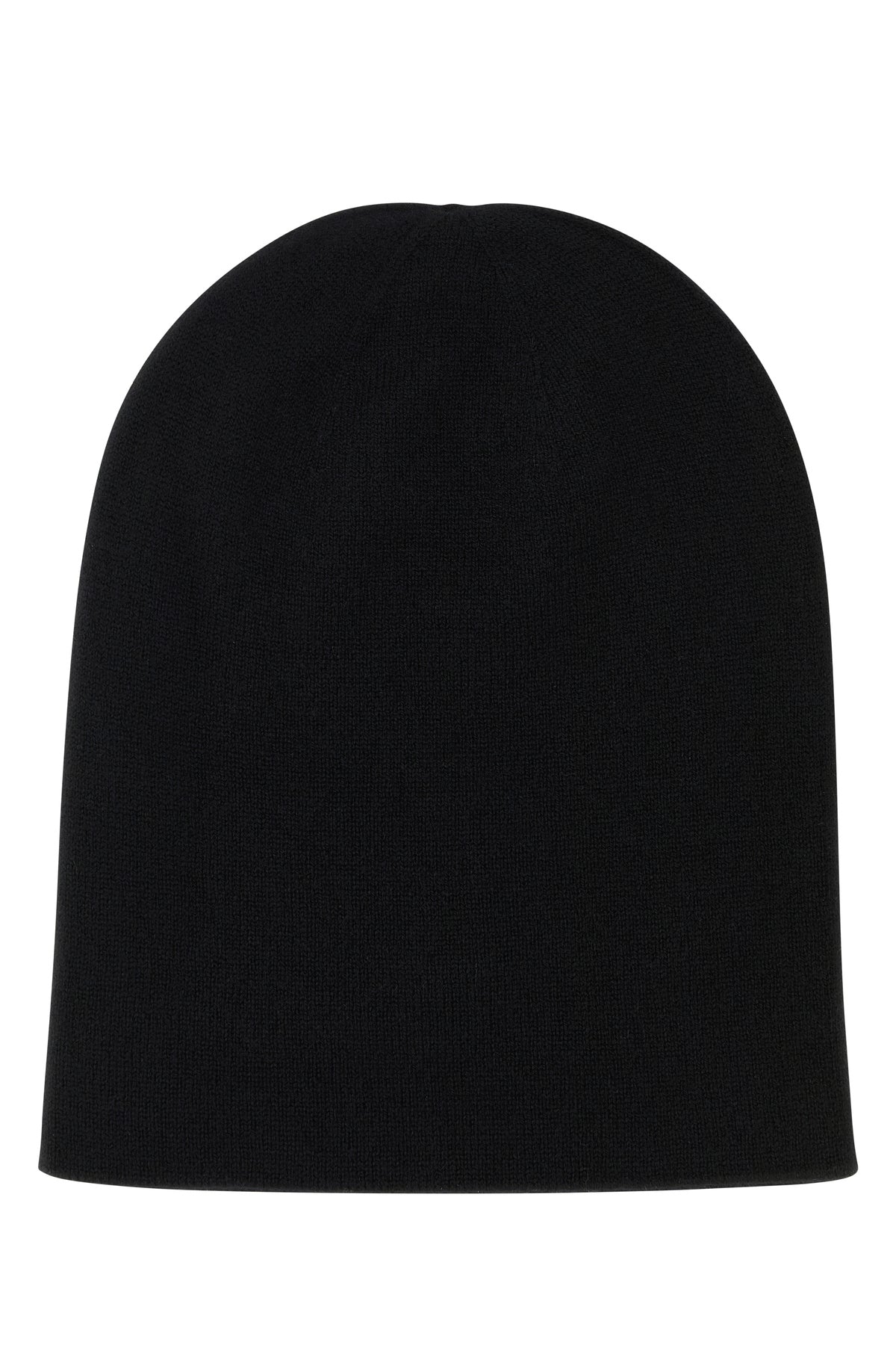 Beanie hat realized in pure cashmere characterized by tonal logoed embroidery at the front.