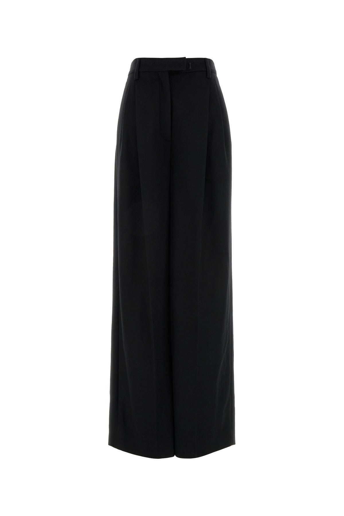 Wide-leg pant realized in pure cashmere characterized by inverted pleats.