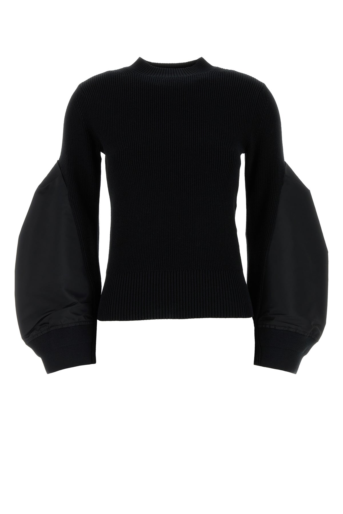 - Ribbed crew-neck, cuffs and hemline