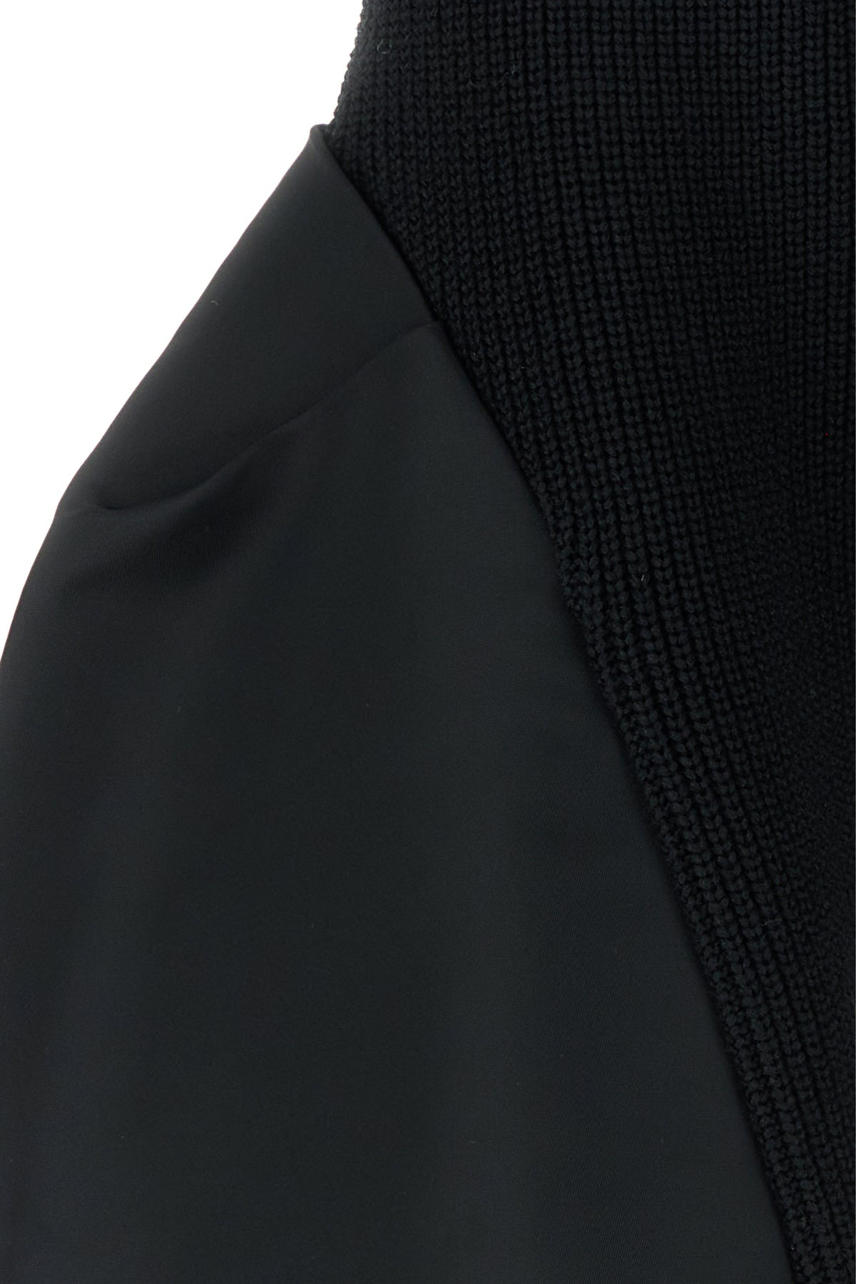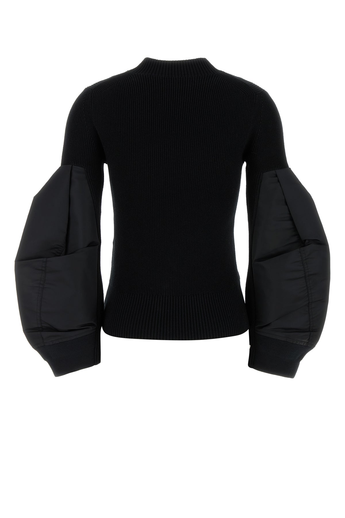 sweater realized in cotton blend with nylon inserts on the sleeves.