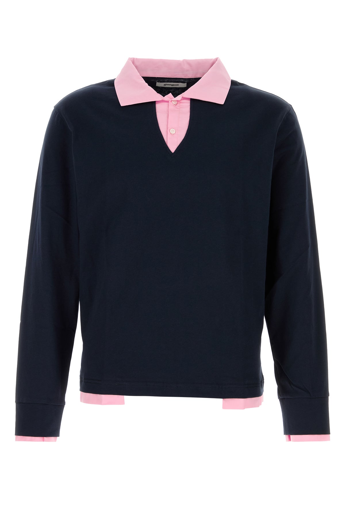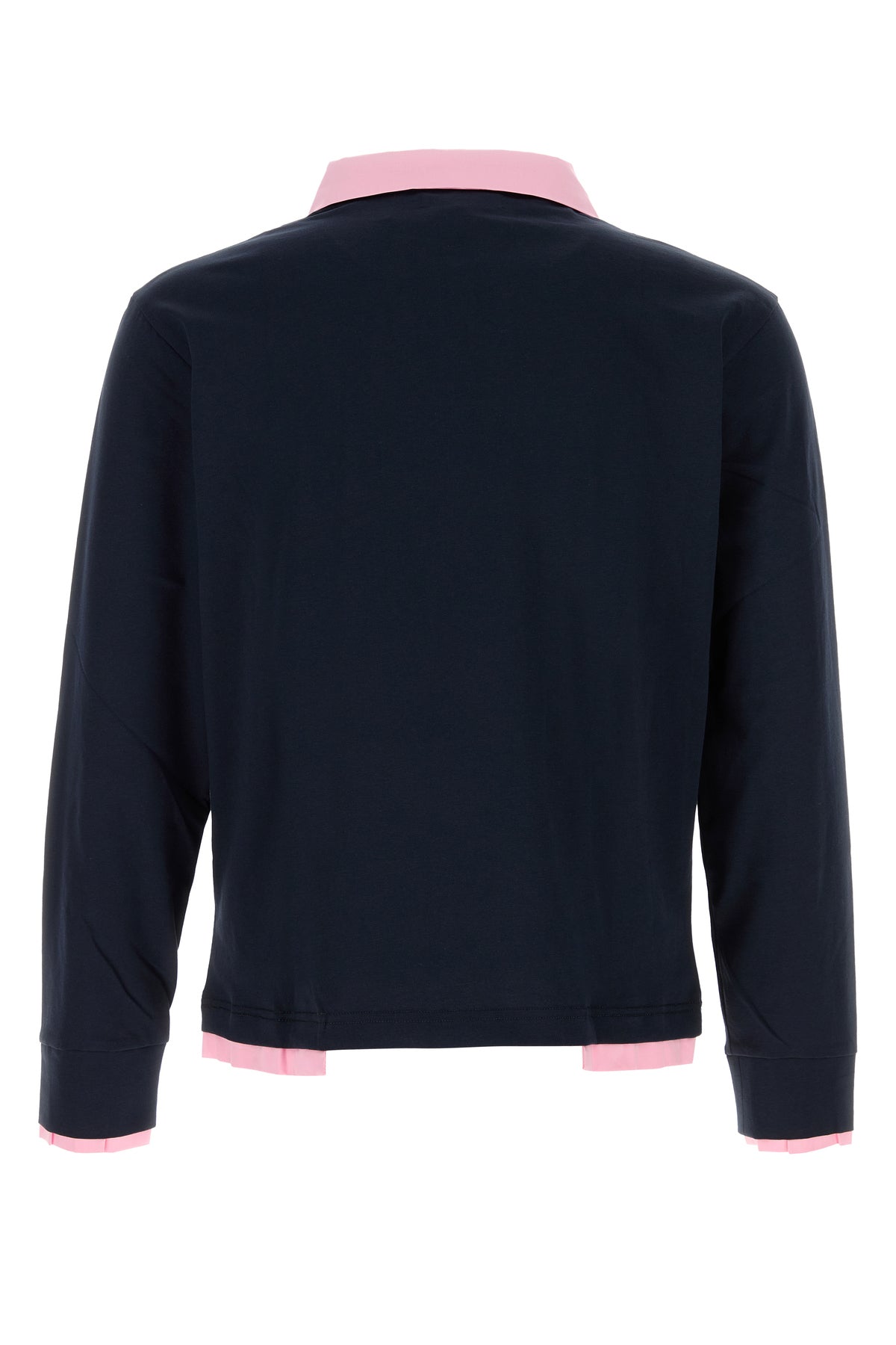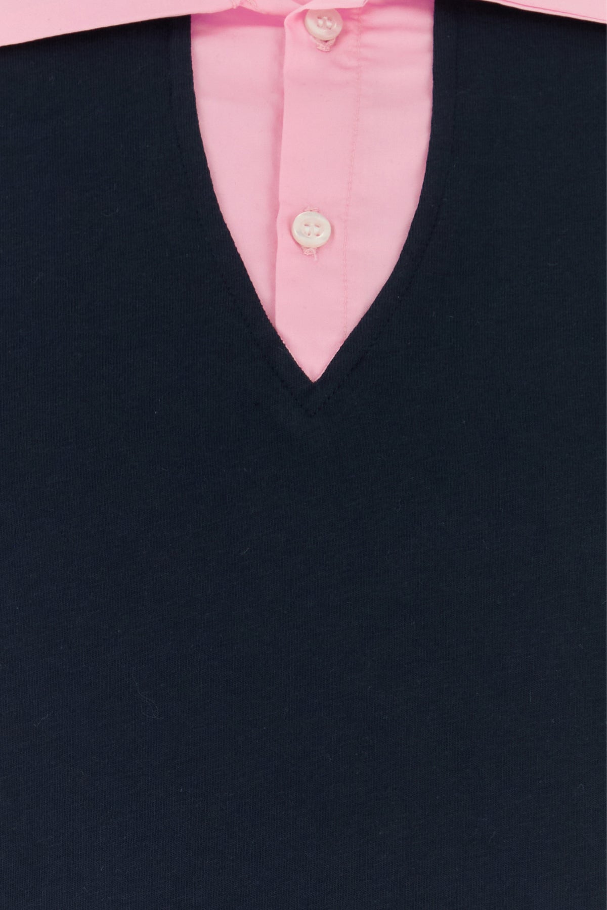 Long-sleeves polo shirt realized in pure cotton with contrasting poplin inserts at the tip and on the hemline.