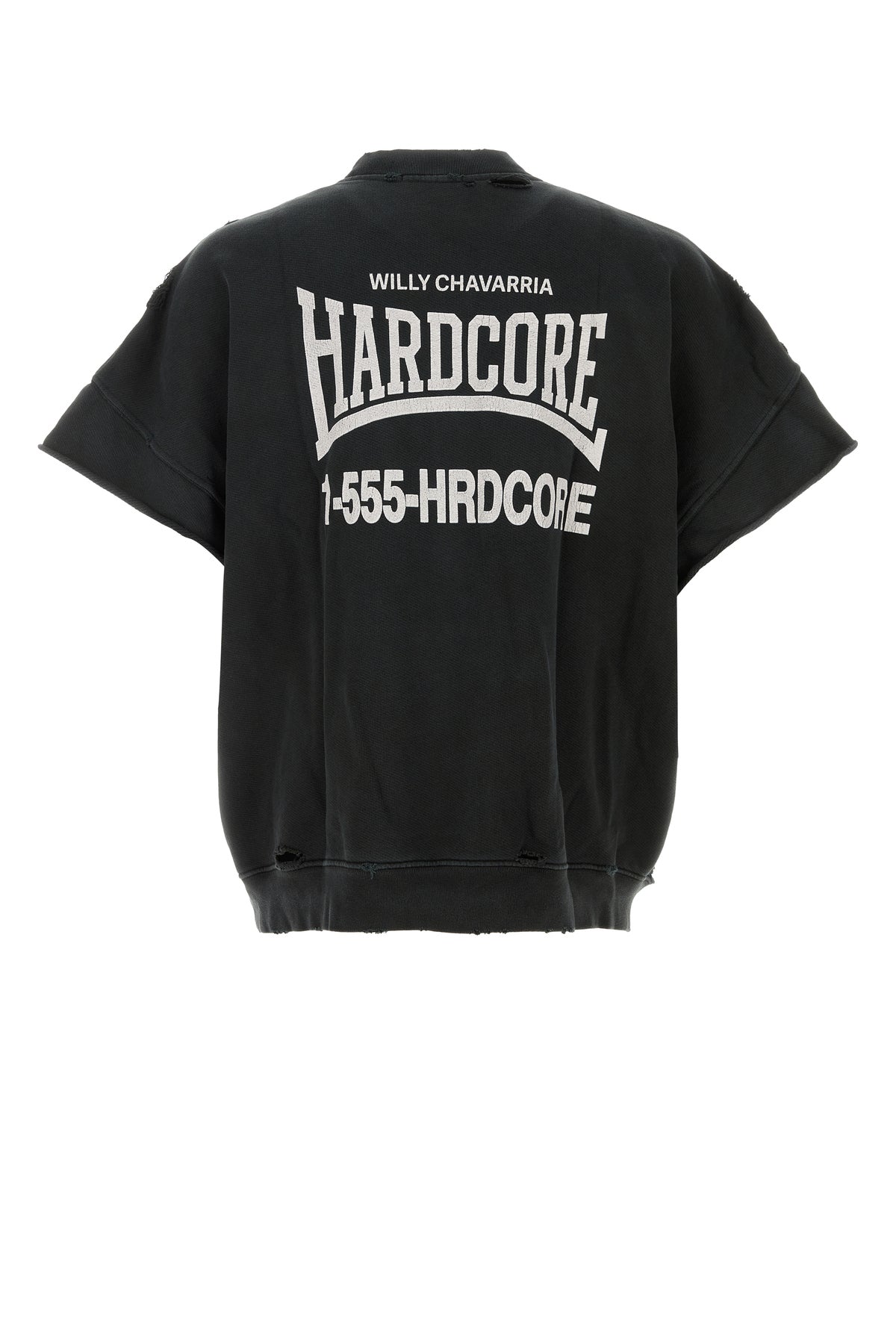 Oversize t-shirt realized in stonewashed and distressed pure cotton characterized by Willy Chavarria Hardcore on the chest and at the back.
