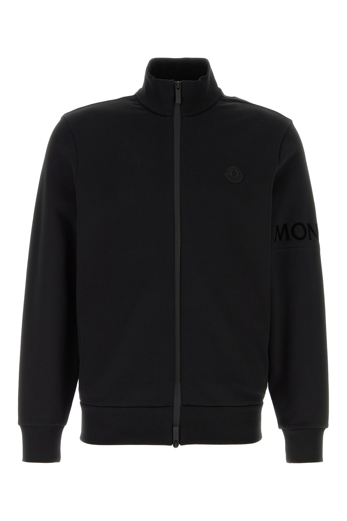 Sweatshirt realized in pure cotton characterized by flocked printed logo on the sleeve enriched by rubberized logoed patch on the chest.