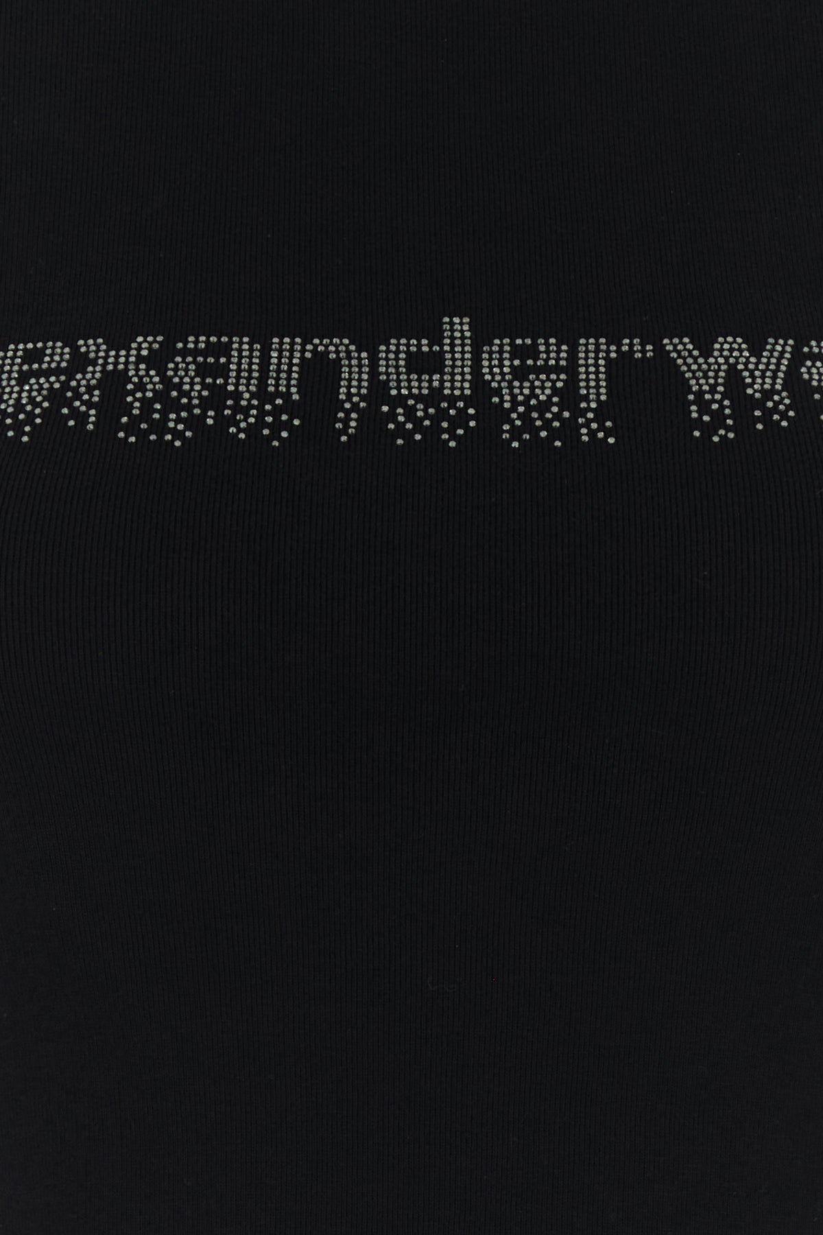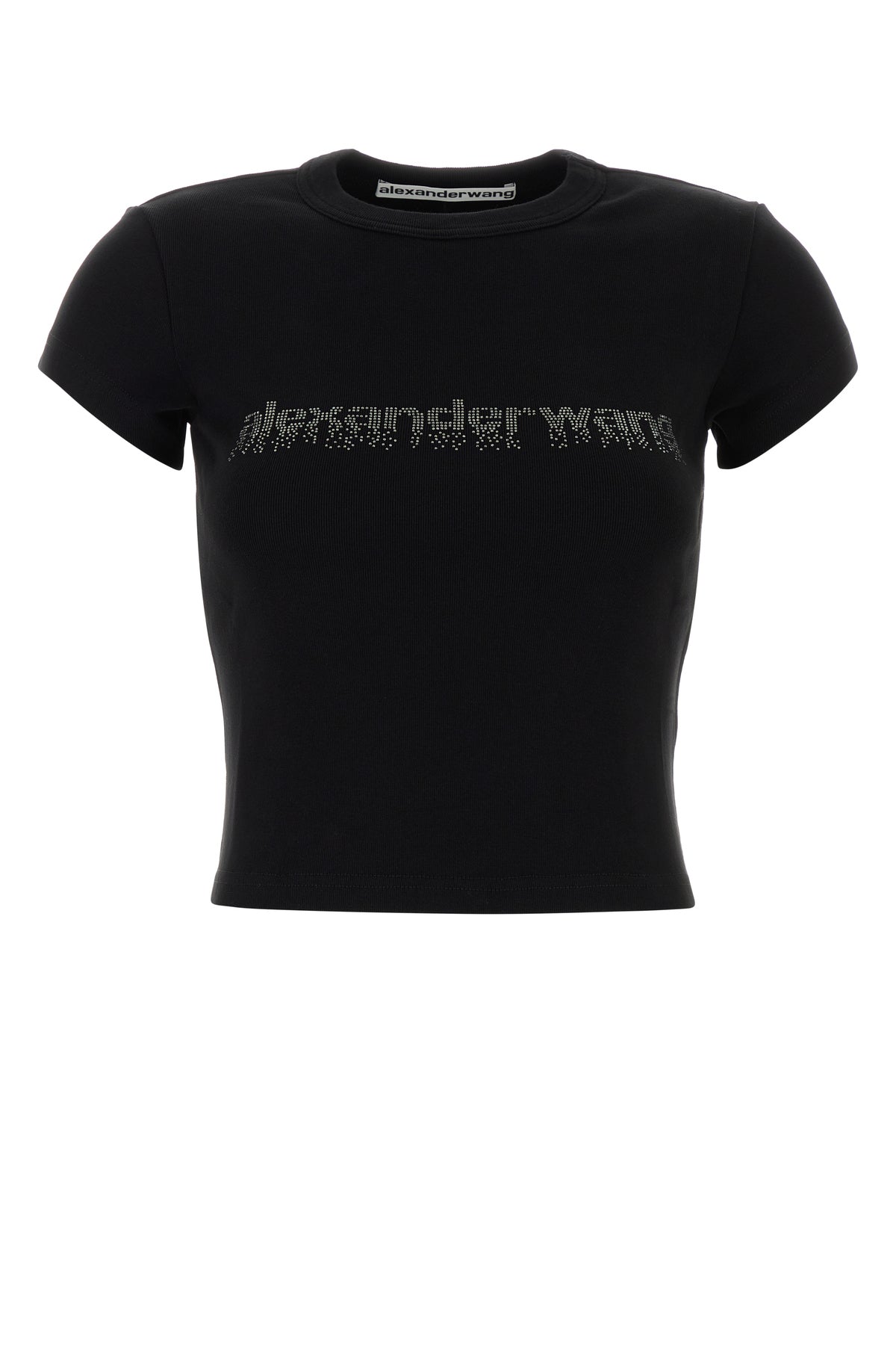 T-shirt realized in pure cotton characterized by rhinestones logo on the chest.