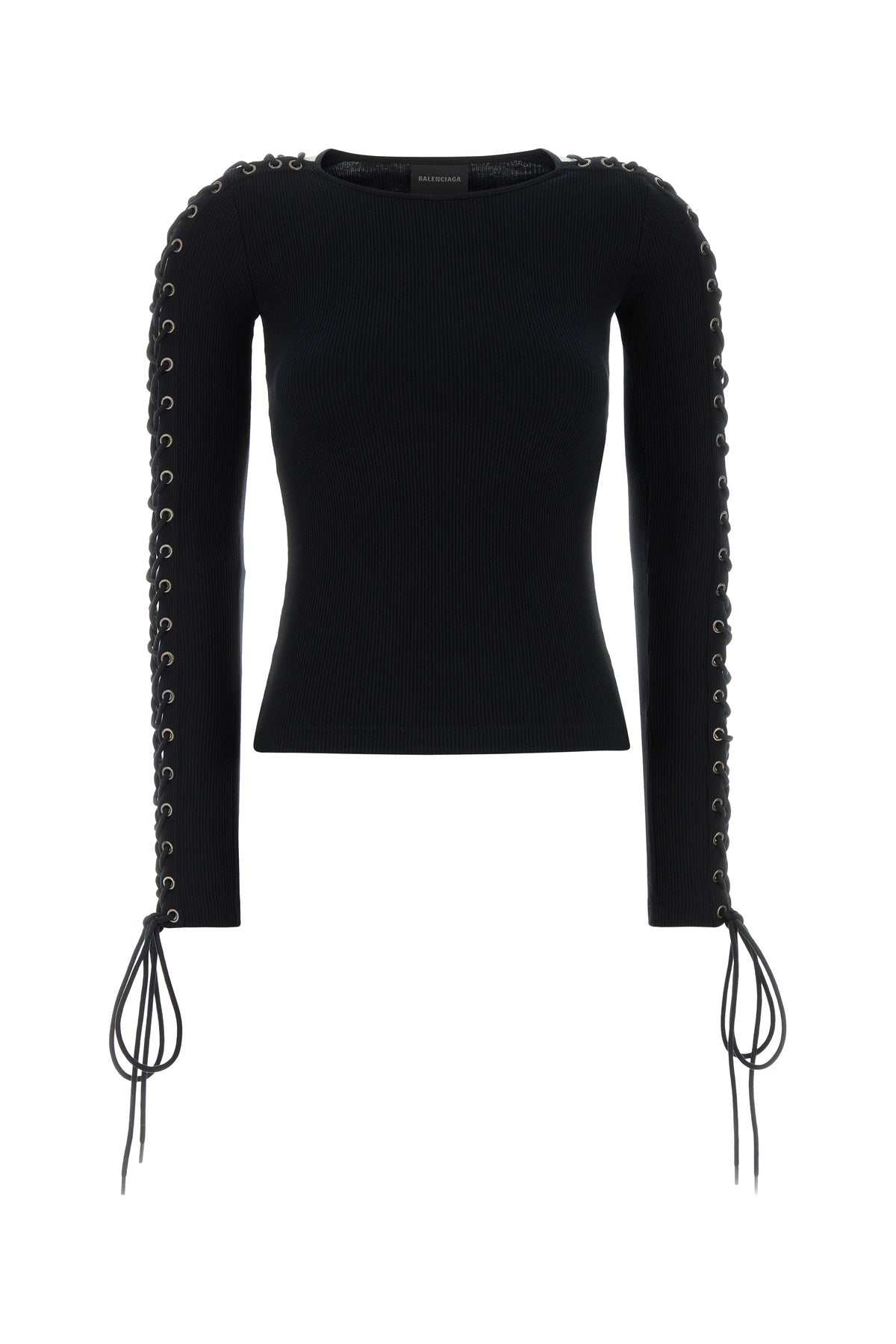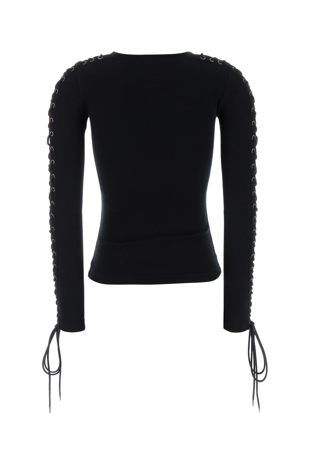 Long-sleeves t-shirt realized in pure cotton enriched by decorative laces at the top and on the sleeves.