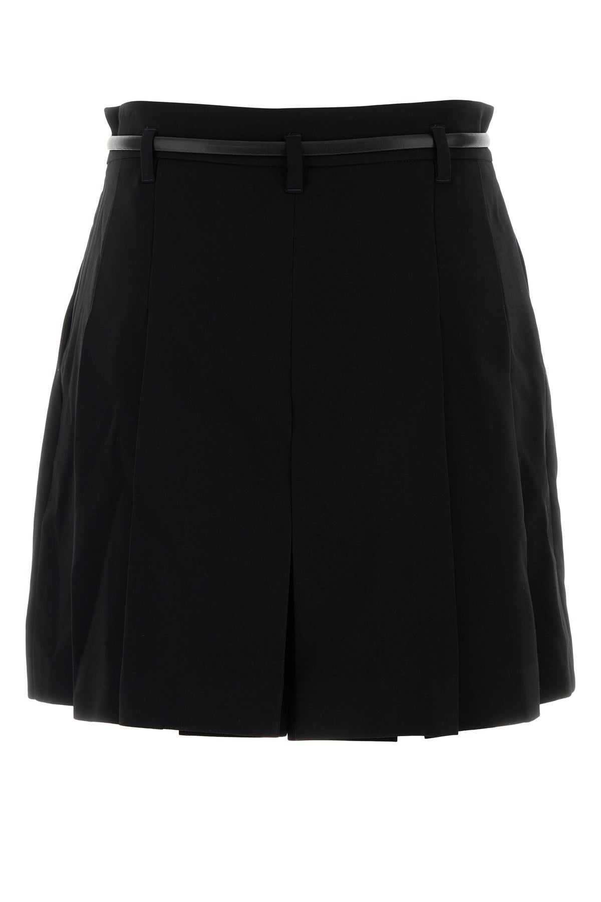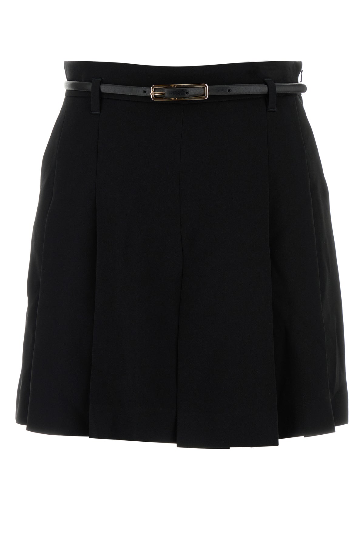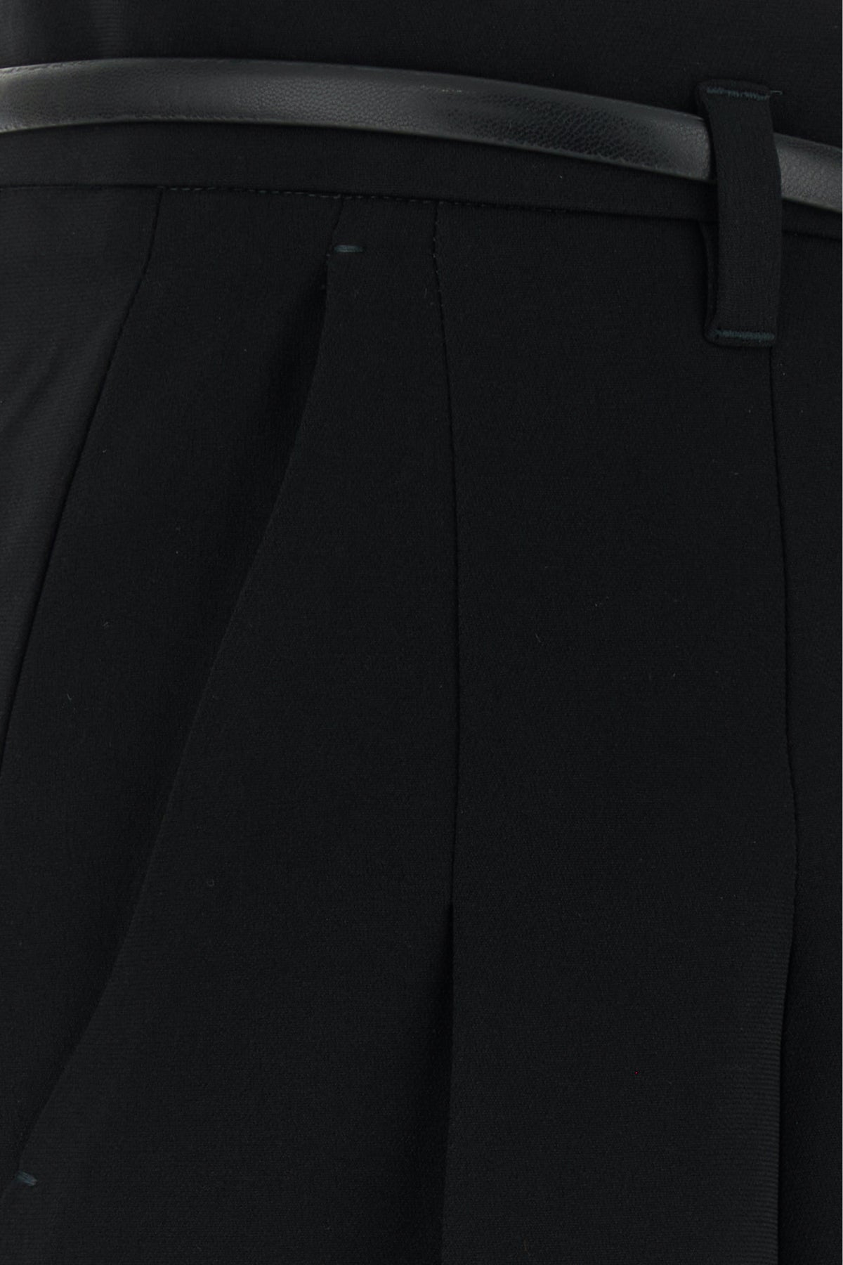 Pleated shorts realized in crepe enriched by tonal leather belt.