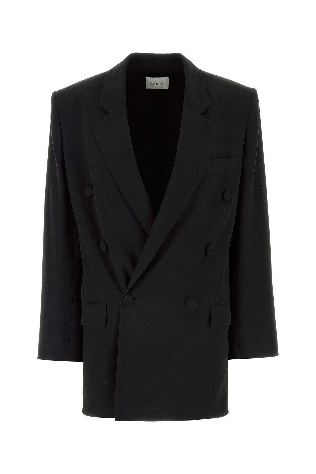 Blazer realized in pure silk crepe characterized by padded shoulders.
