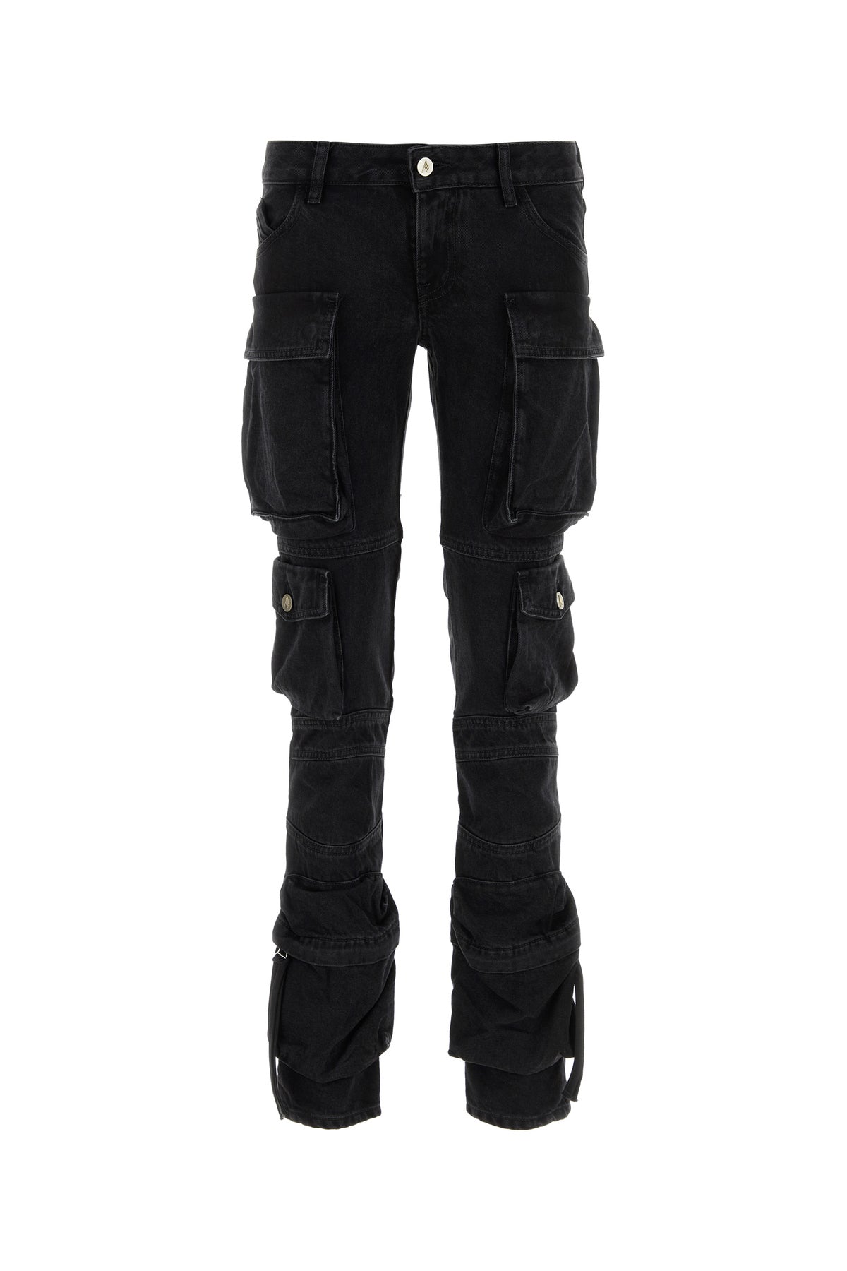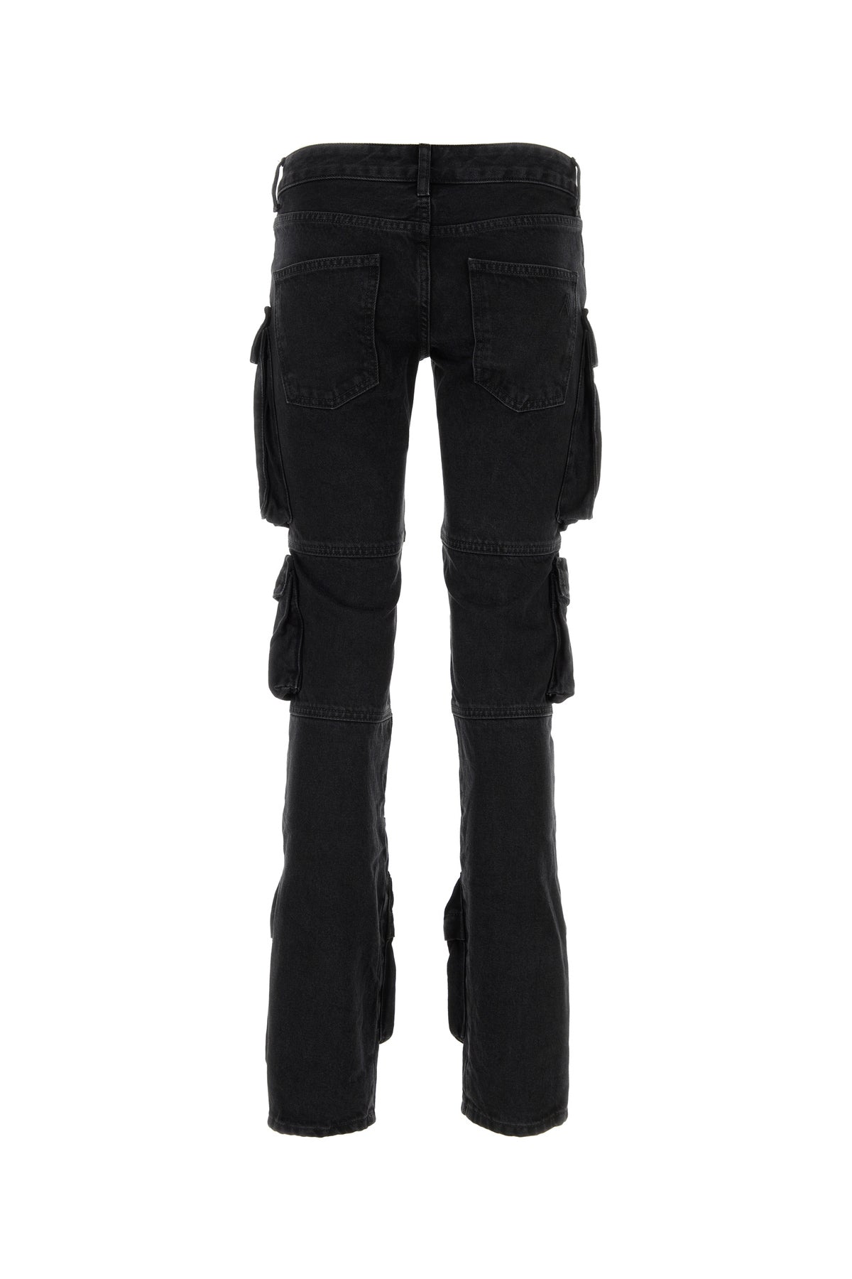 Cargo jeans realized in pure cotton denim characterized by tonal logoed embroidery at the back.