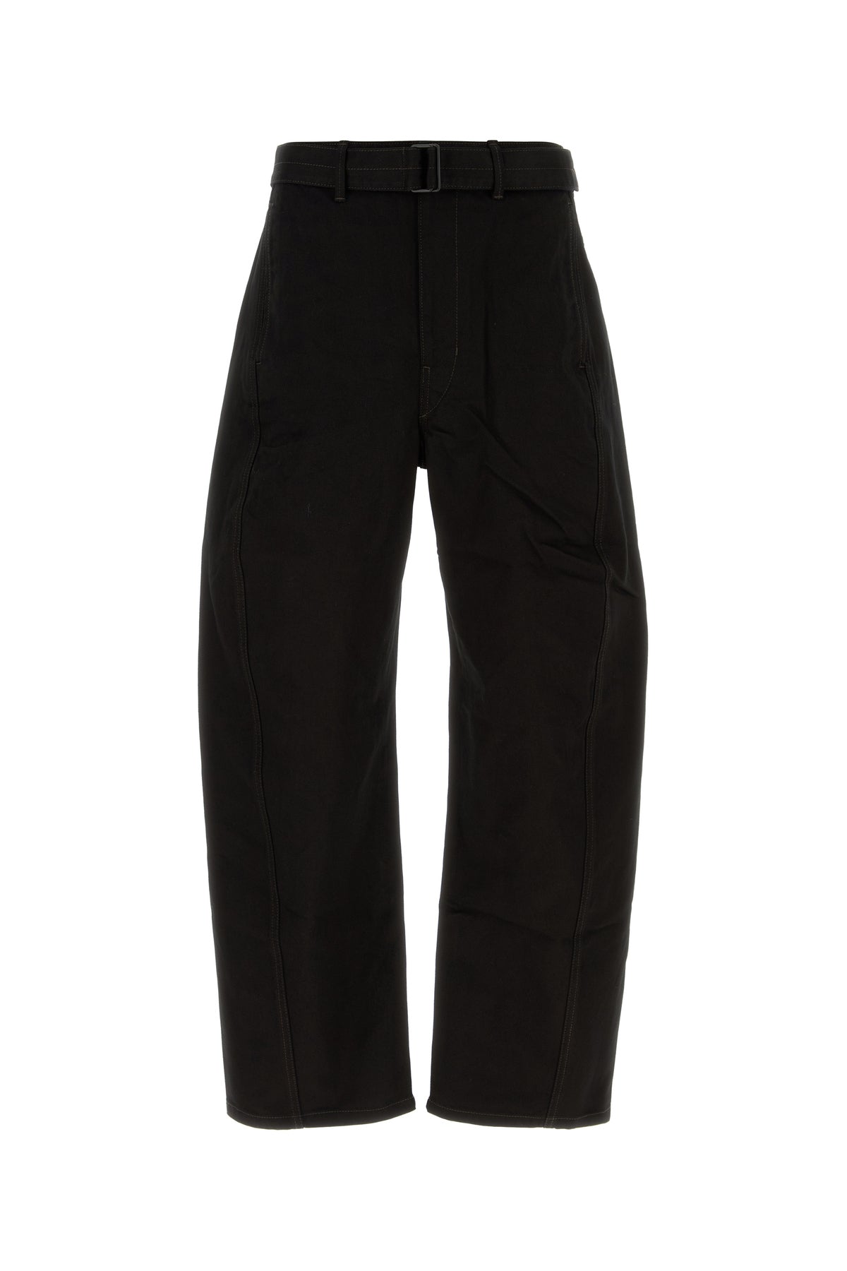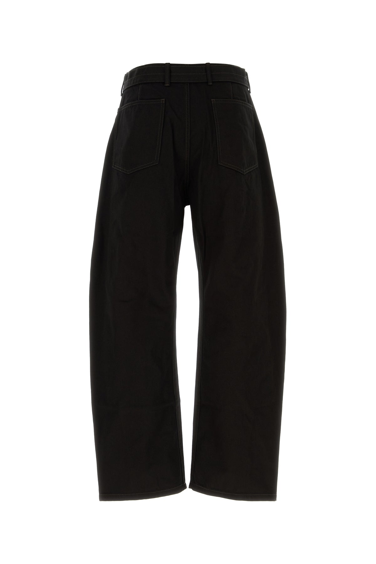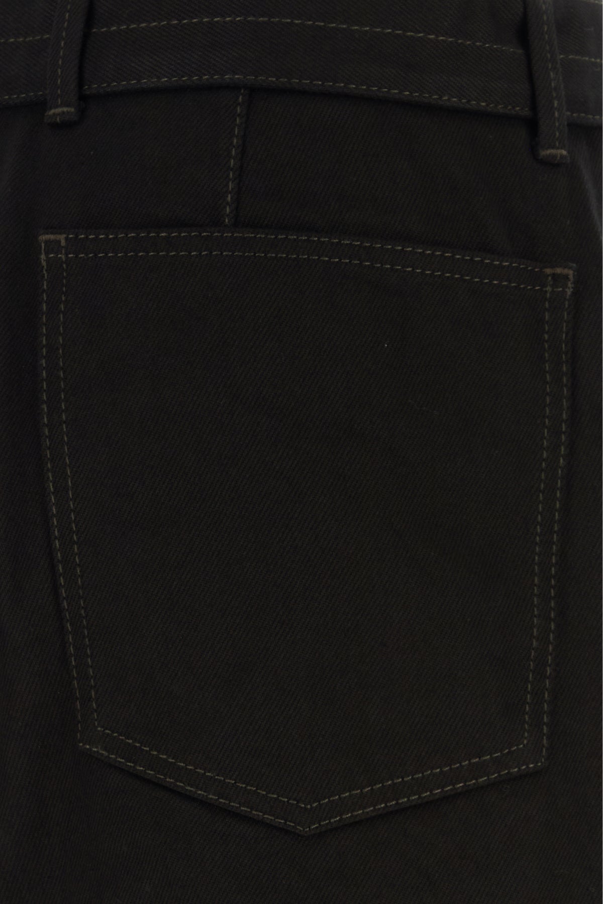 Wide-leg jeans realized in pure cotton denim enriched by tonal fabric belt at the waist.