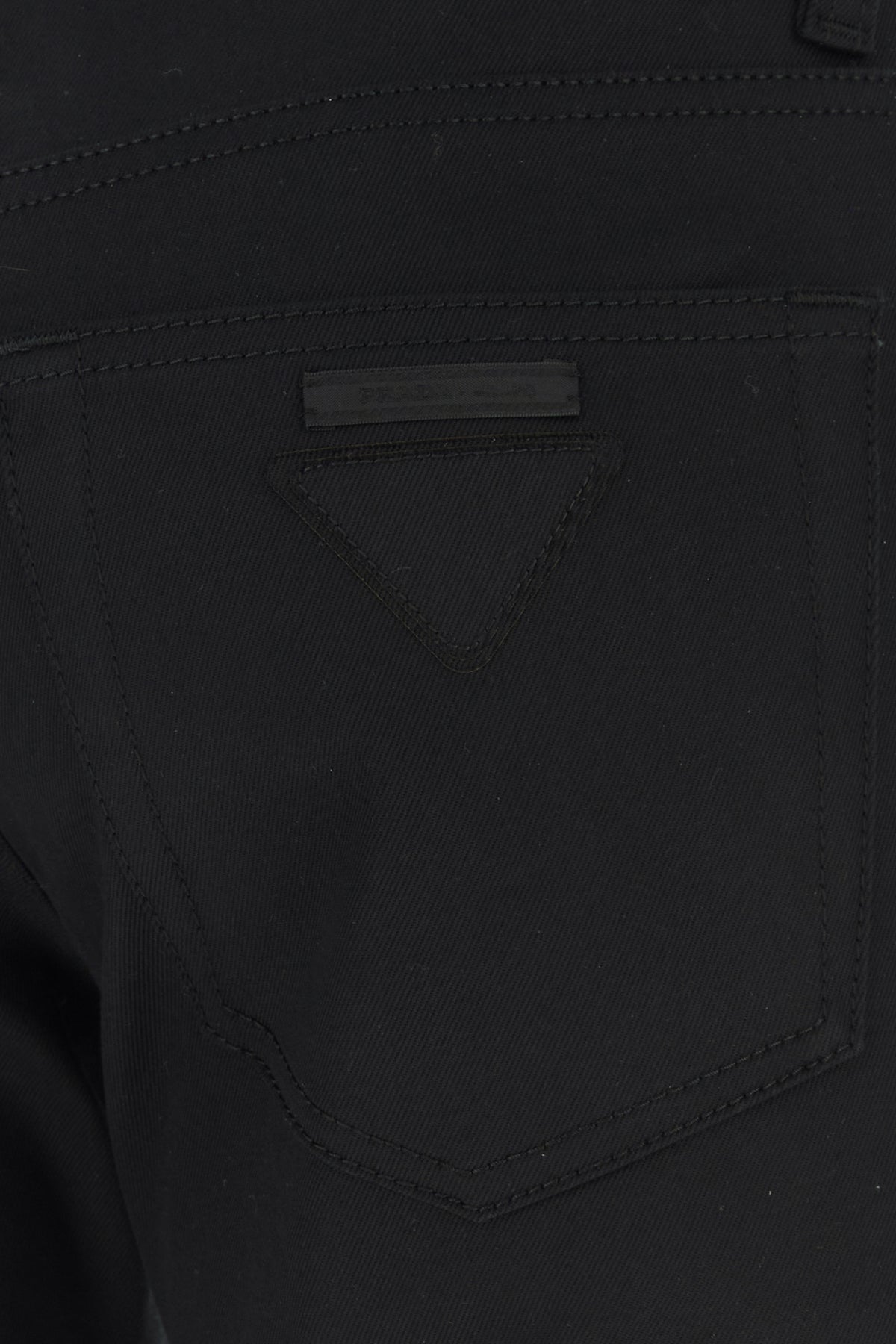 Chino pant realized in stretch cotton drill enriched by iconic tonal fabric triangle and contrasting logoed label at the back.