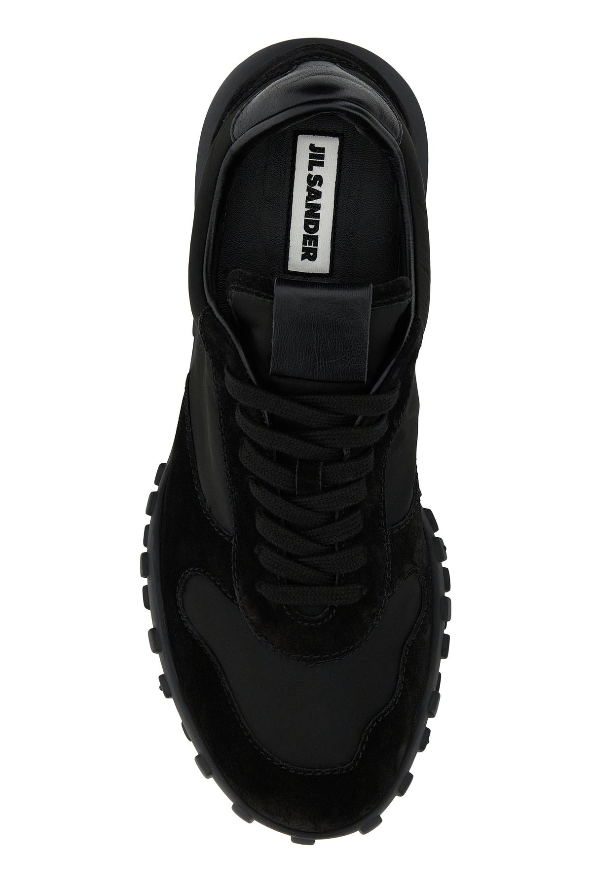 Black fabric and suede sneakers
