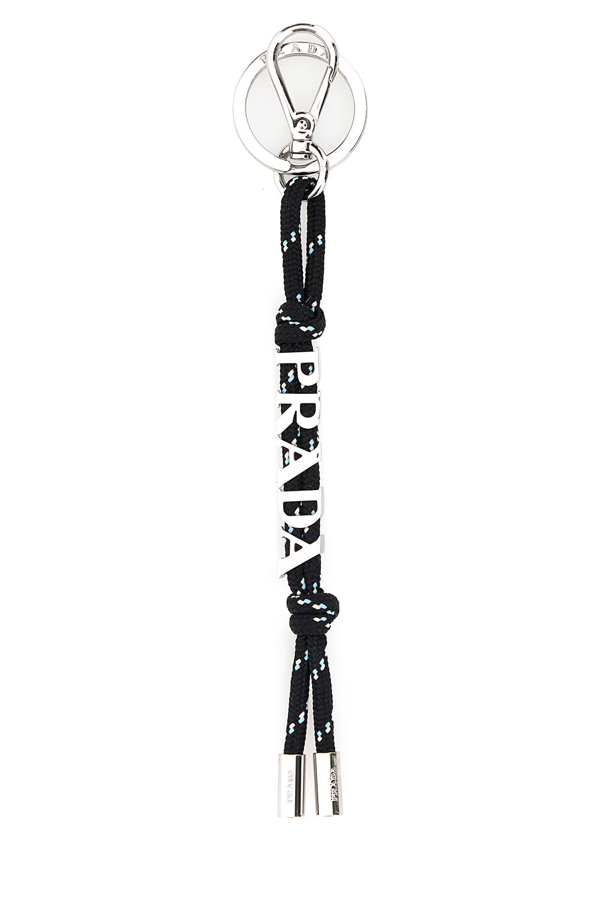 Key ring realized in fabric characterized by peculiar embroidery on the entire surface enriched by metal lettering logo.