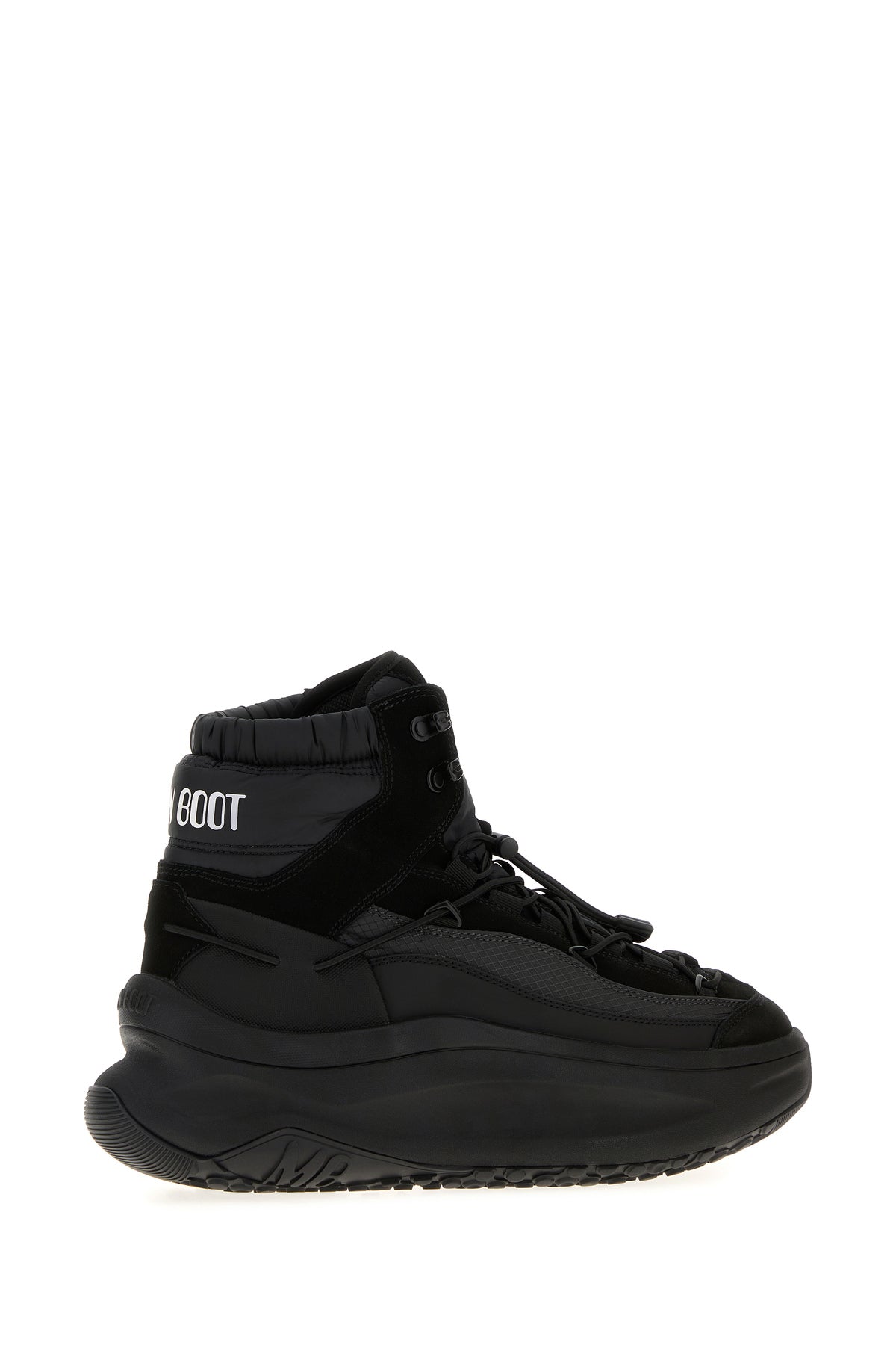 High-top sneakers realized in fabric characterized by contrasting printed logo at the back and logo in relief on the heel.