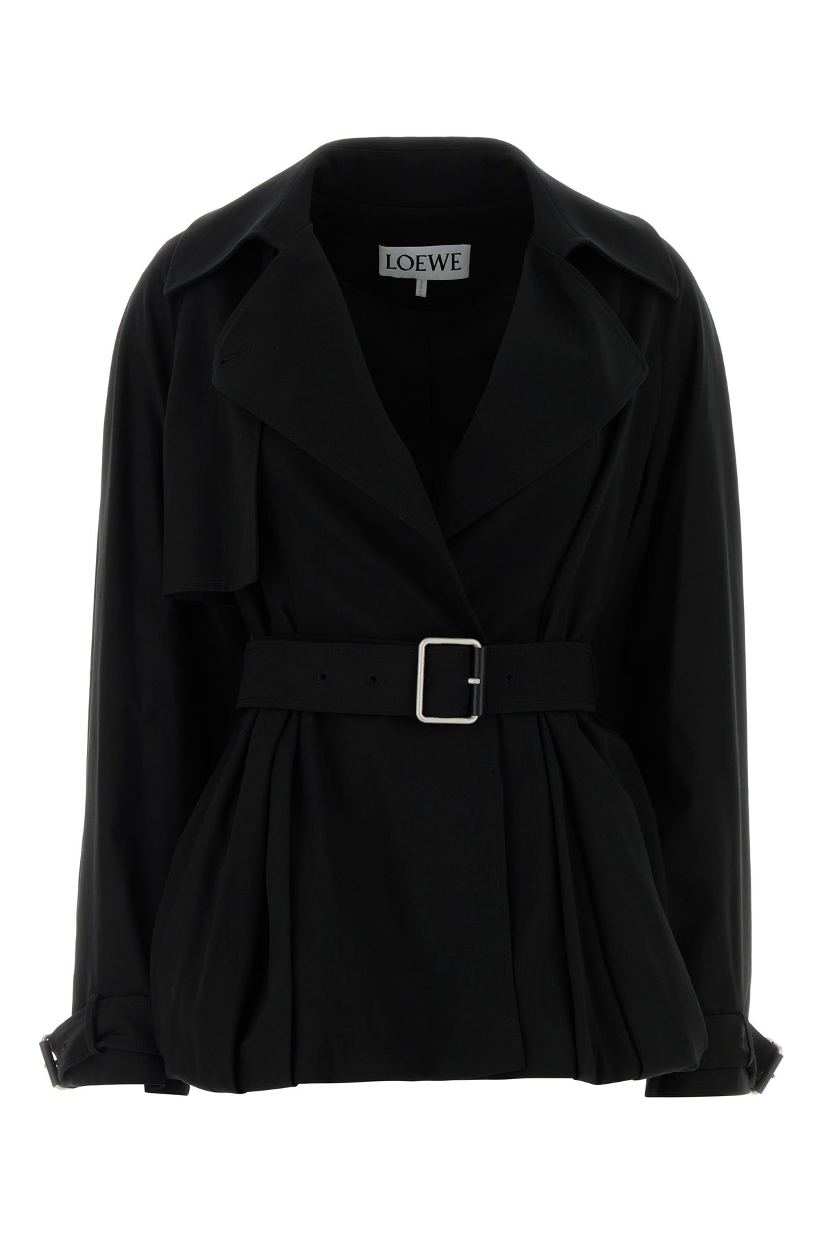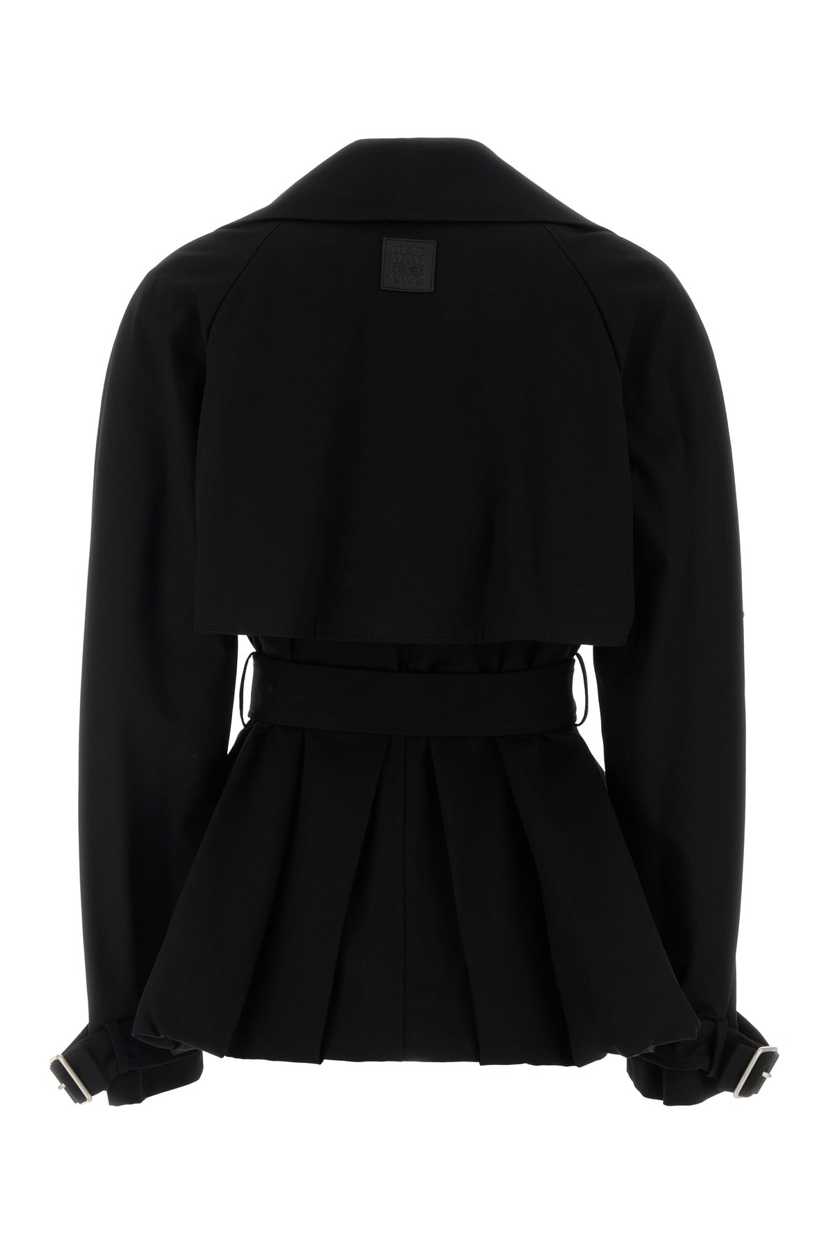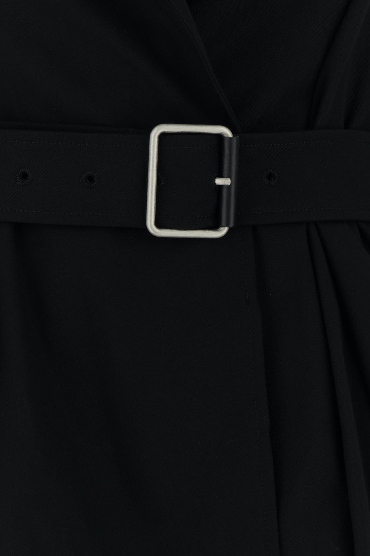 Black gabardine trench coat