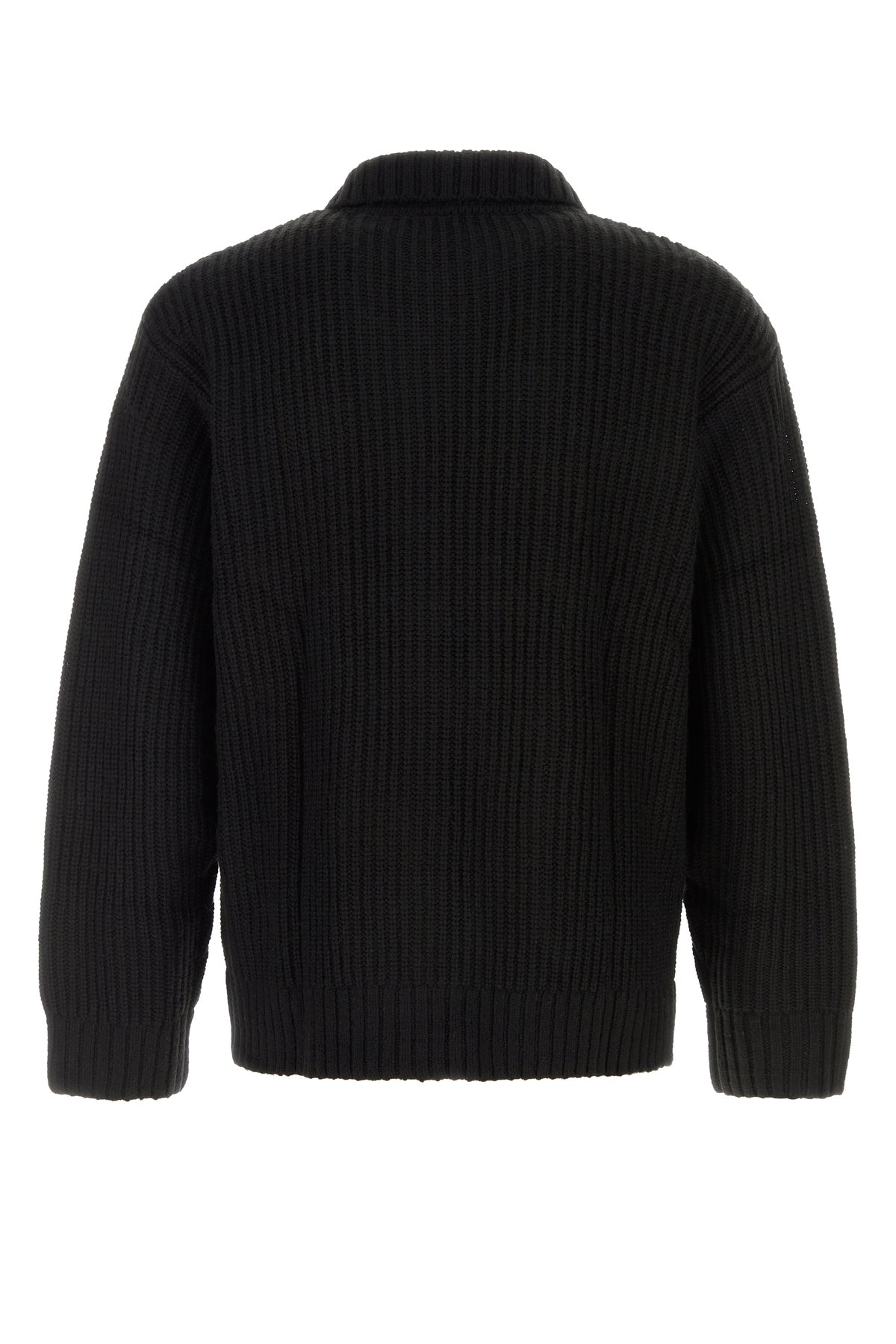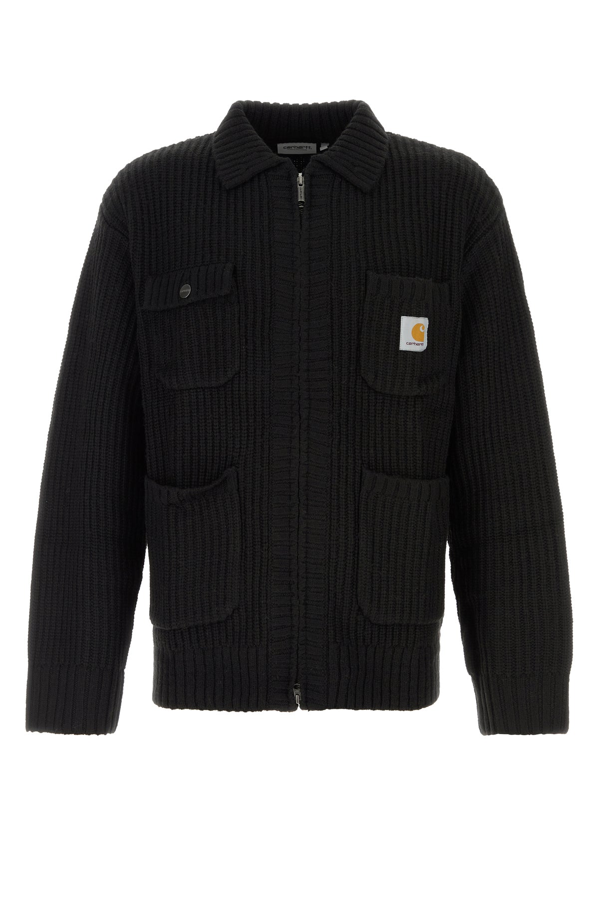 Cardigan realized in ribbed knit enriched by contrasting logoed label on the chest.