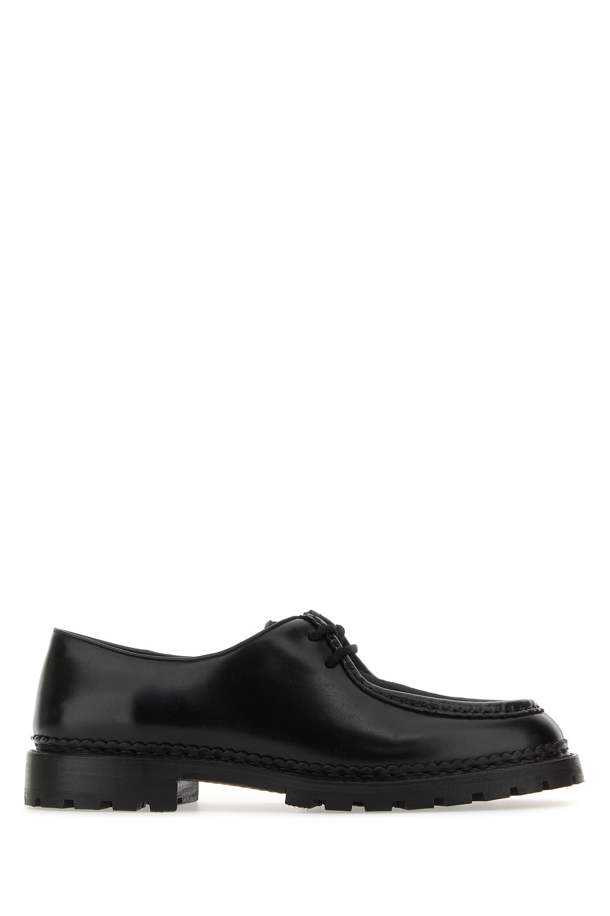 Black leather and calf hair lace-up shoes