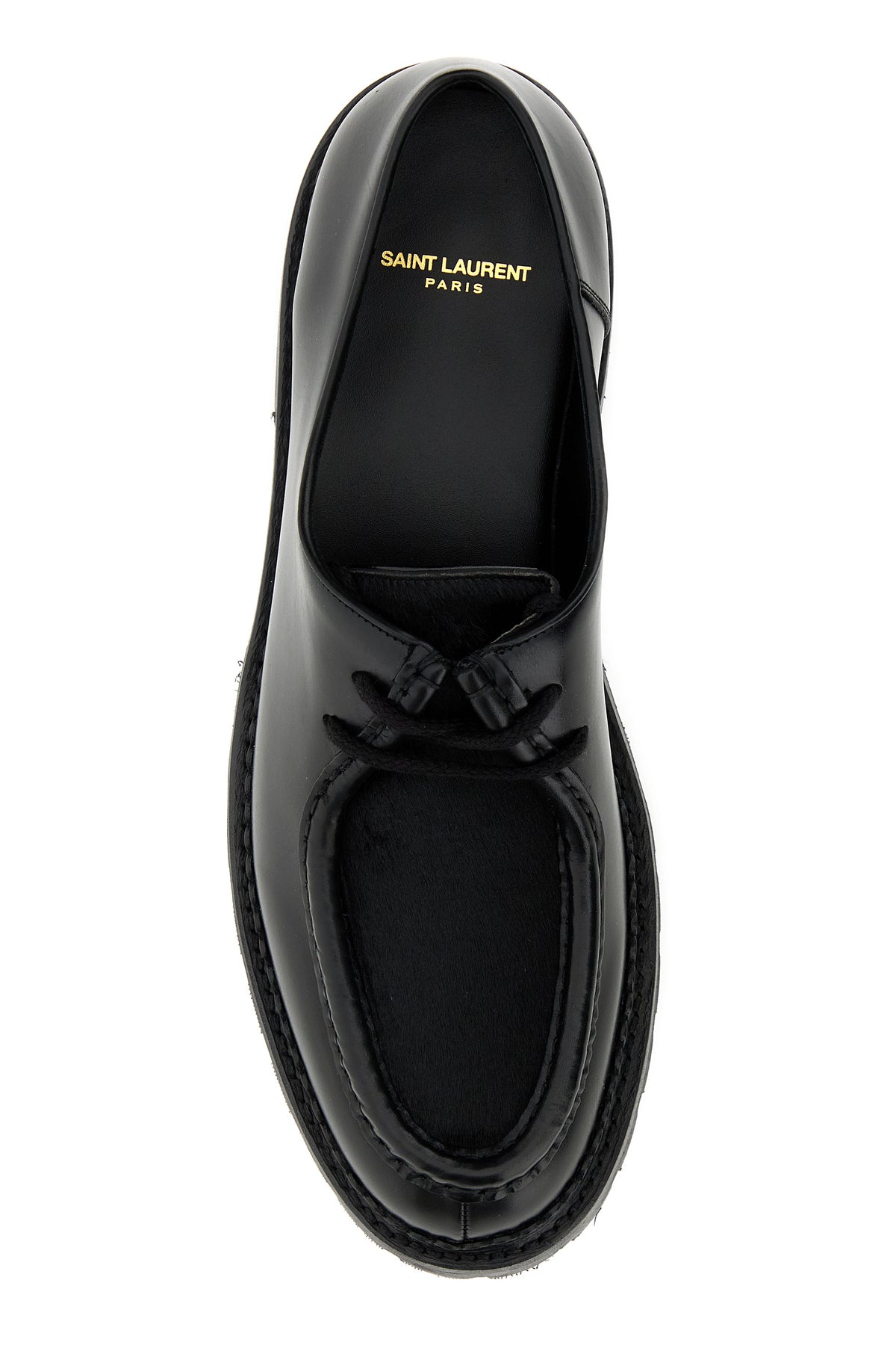 Lace-up shoes realized in smooth leather and calf hair.
