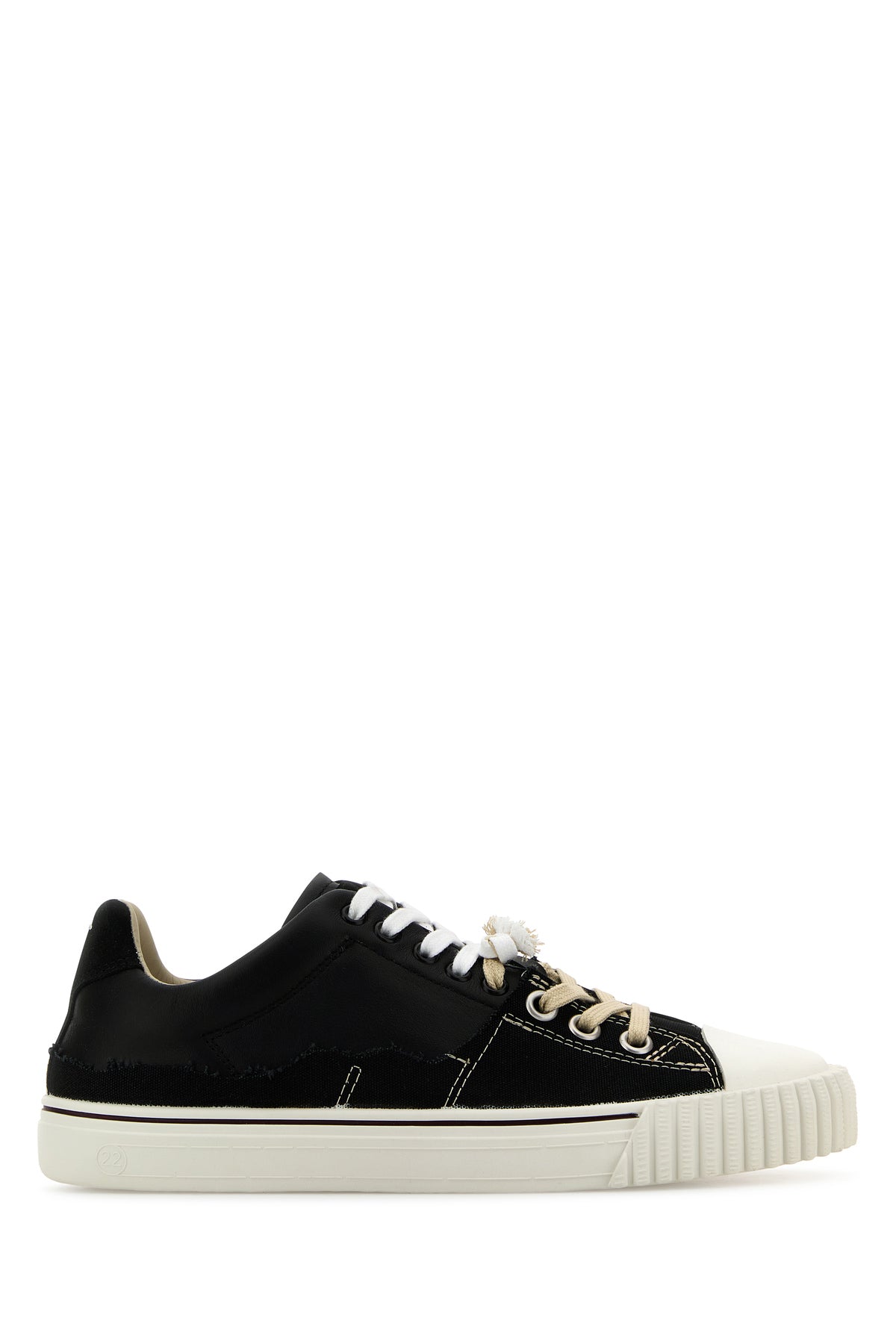 Sneakers realized in smooth calf leather and pure cotton canvas characterized by iconic contrasting stitching at the back.